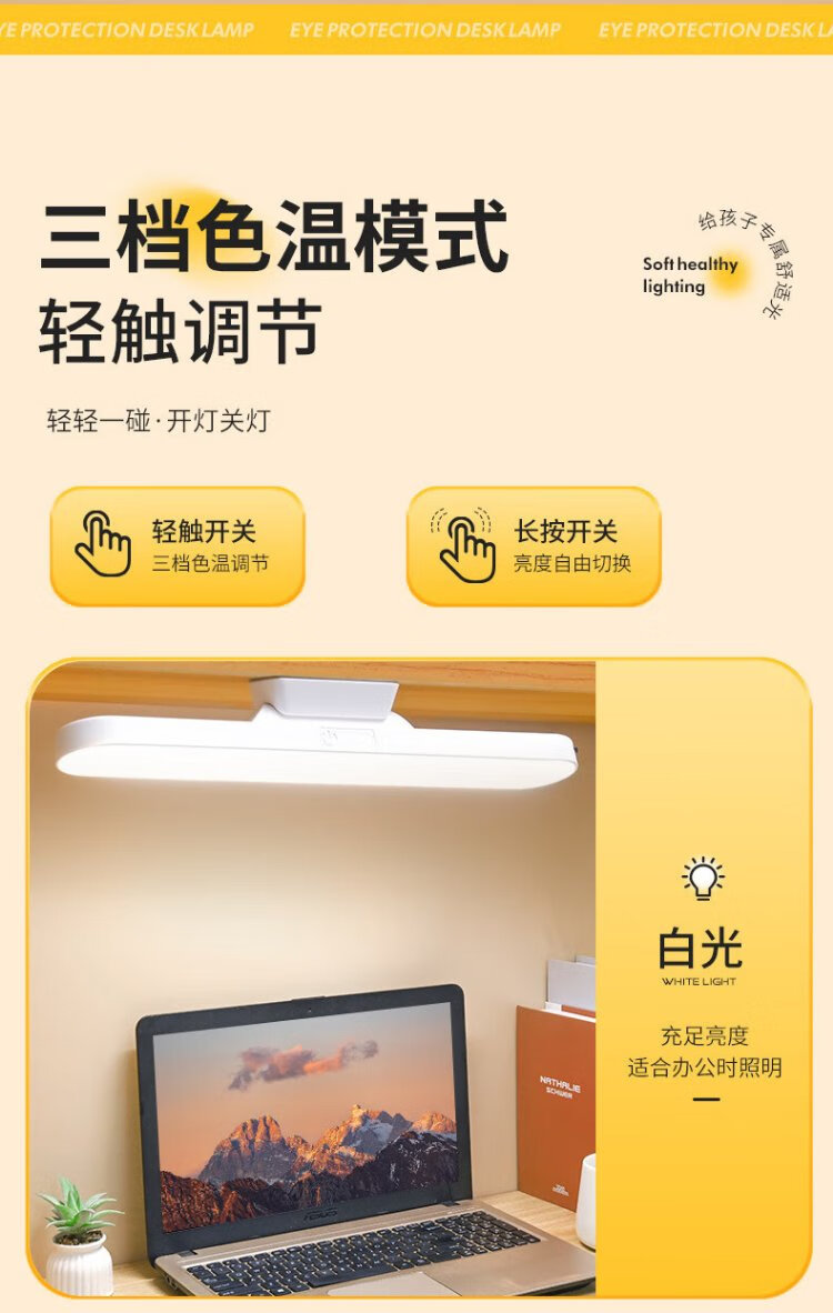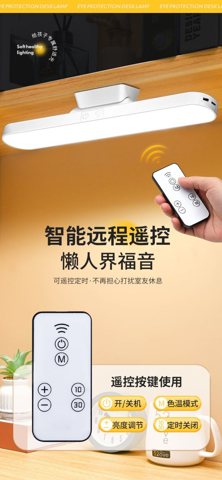 Guan'an LED magnetic lamp USB charging and plugging dual-use work lamp intelligent remote control timing control three-color temperature bookshelf lamp shipped from Beijing warehouse 28cm