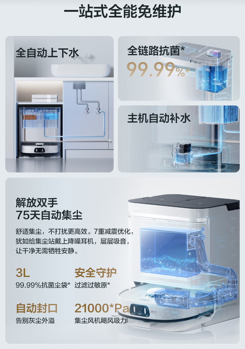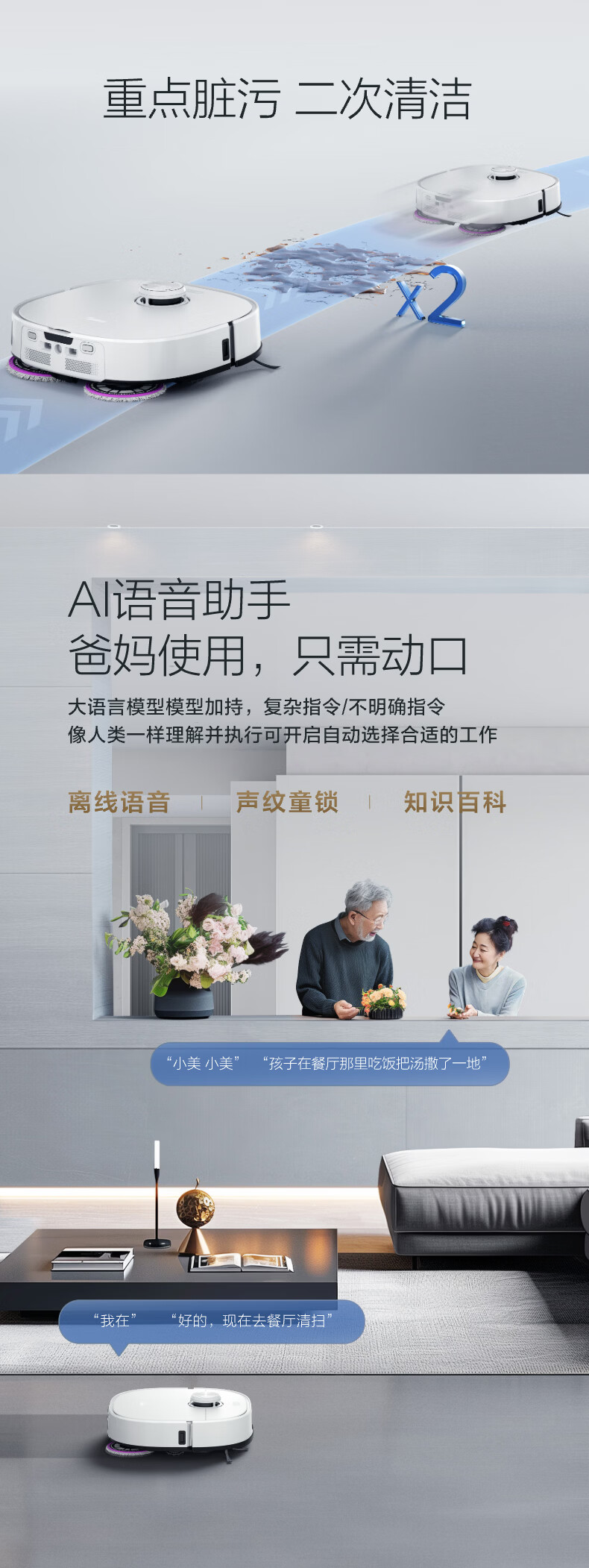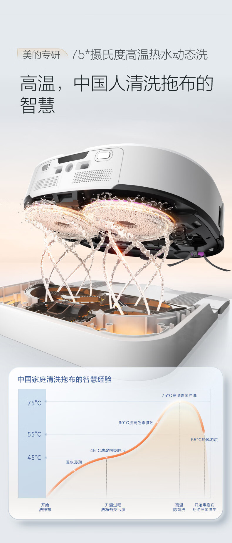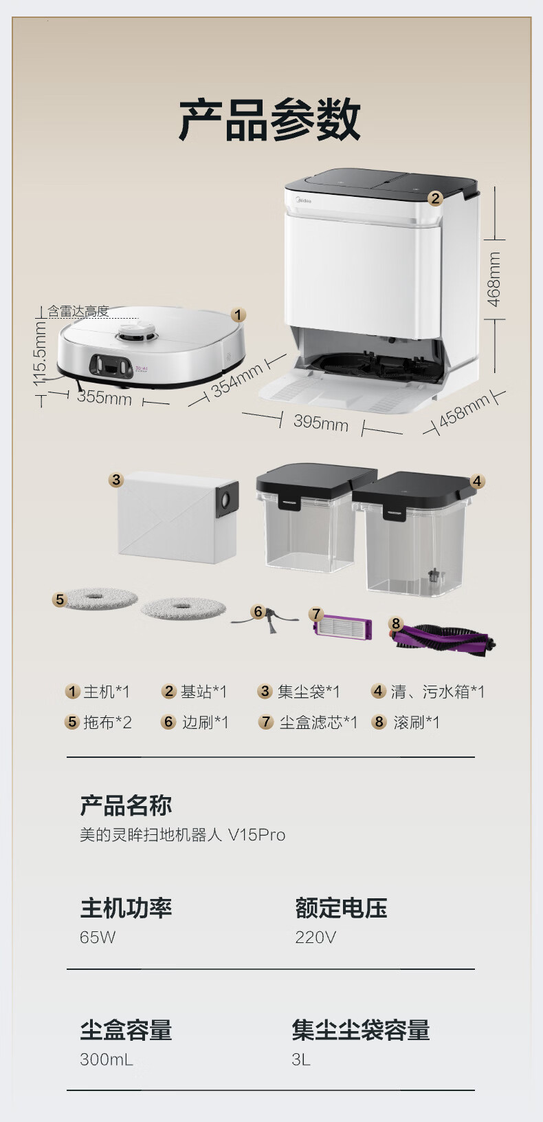 Midea Lingmo V15 Pro Water Tank Version Sweeping Robot Polar White Sweeping and Mopping Integrated Fully Automatic Cleaning, Drying, Water Washing and Mopping All-in-One Flagship Base Station Maintenance-Free