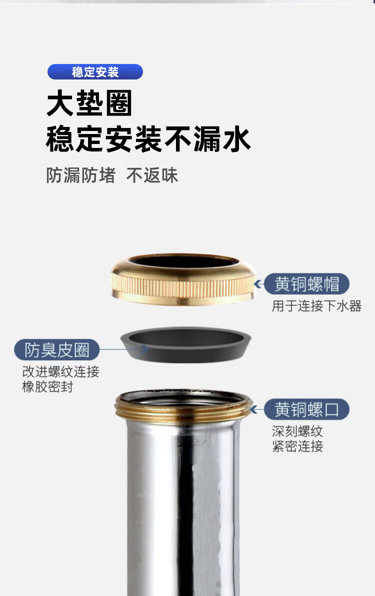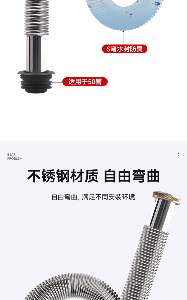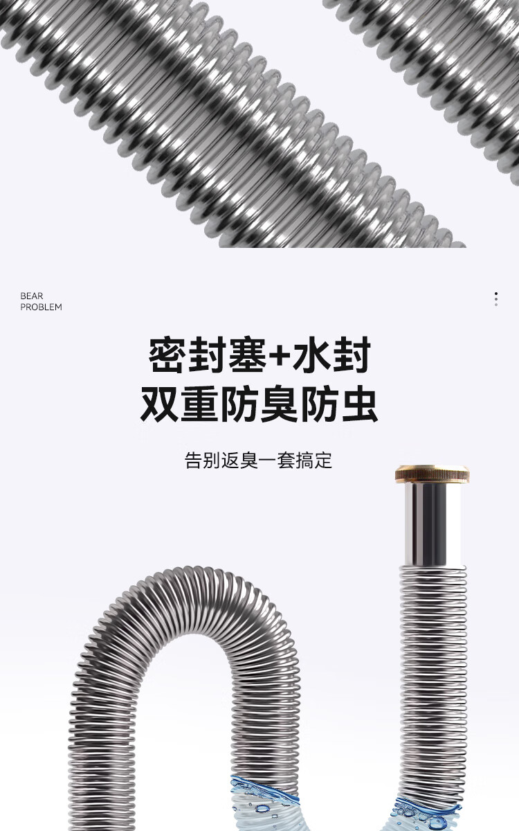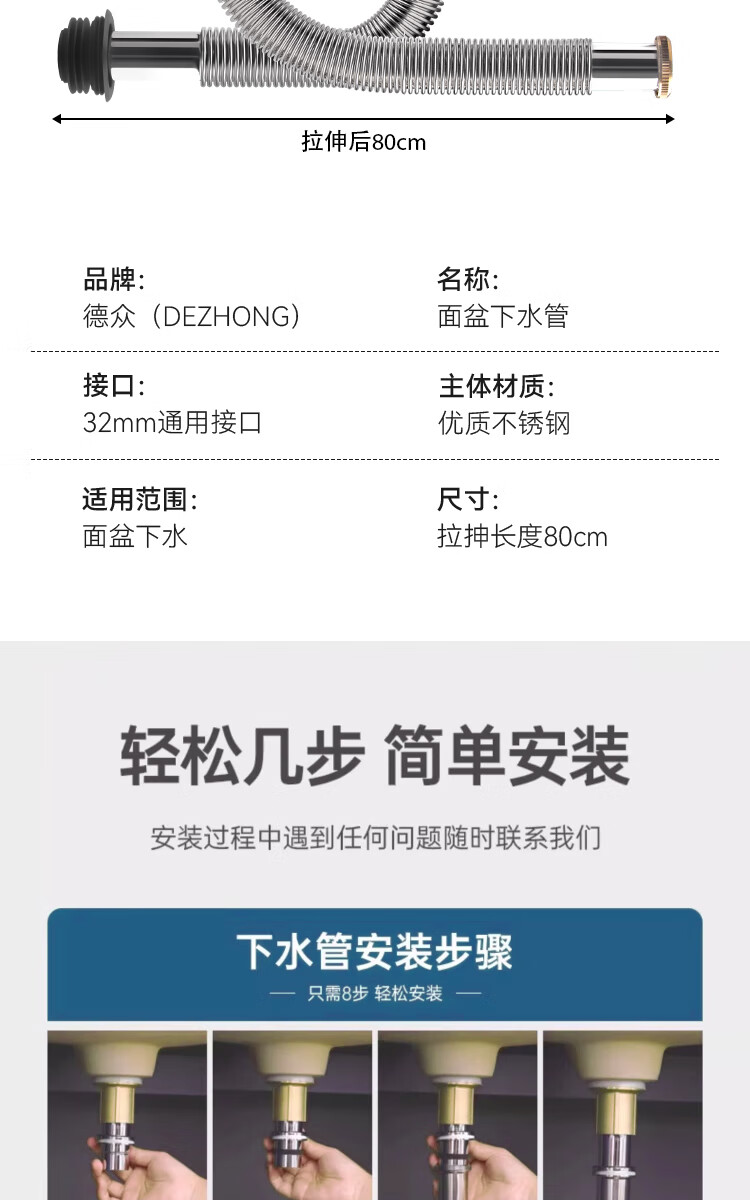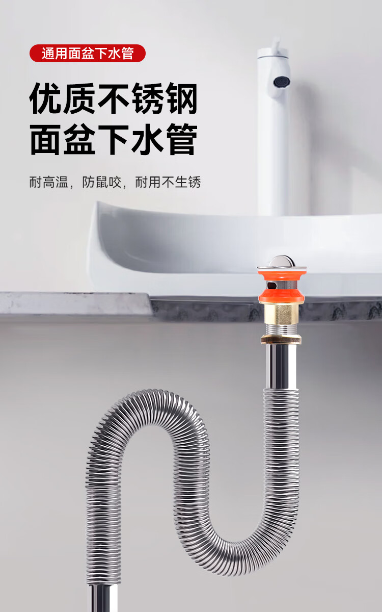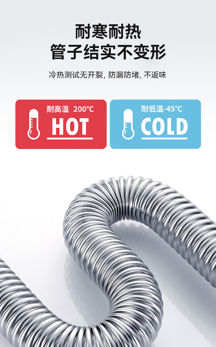 Dezhong patented wash basin drain pipe basin drain hose basin deodorant drainage pipe wash basin anti-rat bite stainless steel sewer pipe accessories very soft and easy to install P210