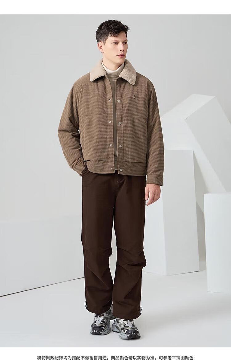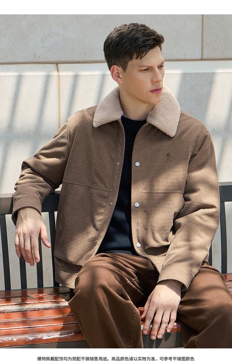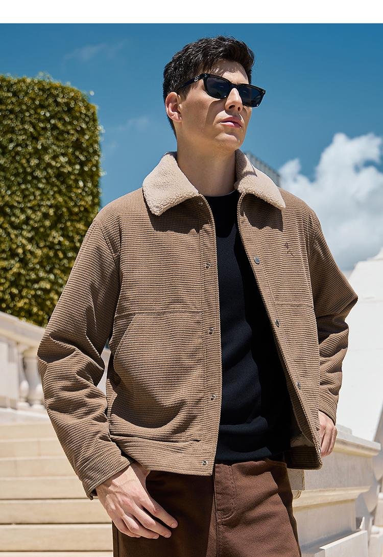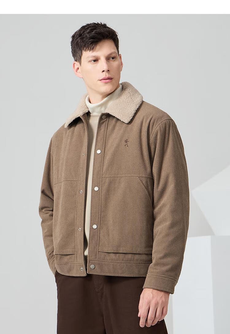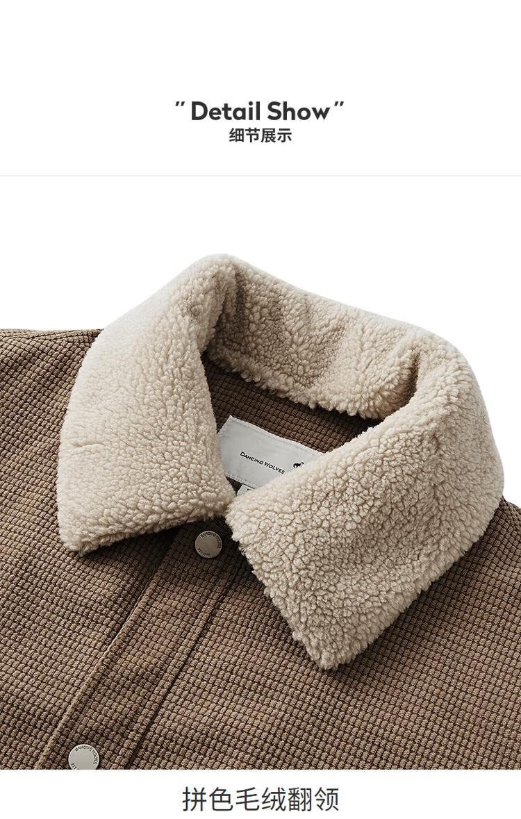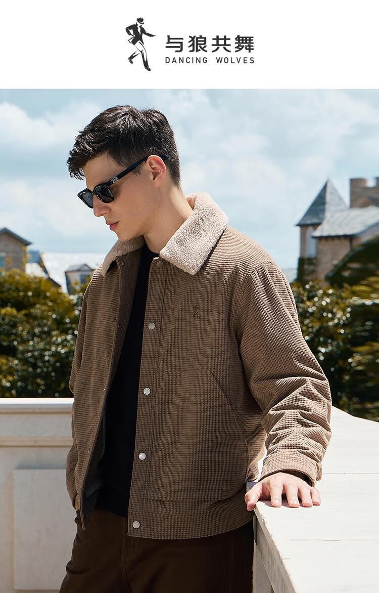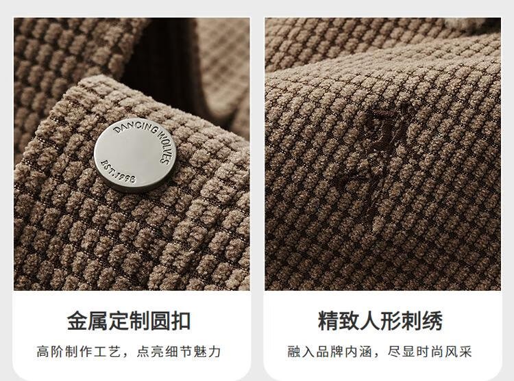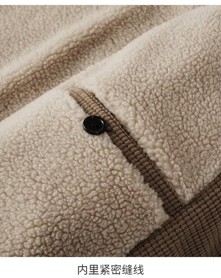 Dances with Wolves velvet jacket men's autumn and winter lapel plaid lamb wool thick jacket men 701 khaki 180