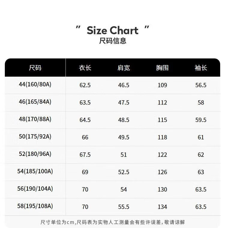 Size (cm) 42 44 46 48 50