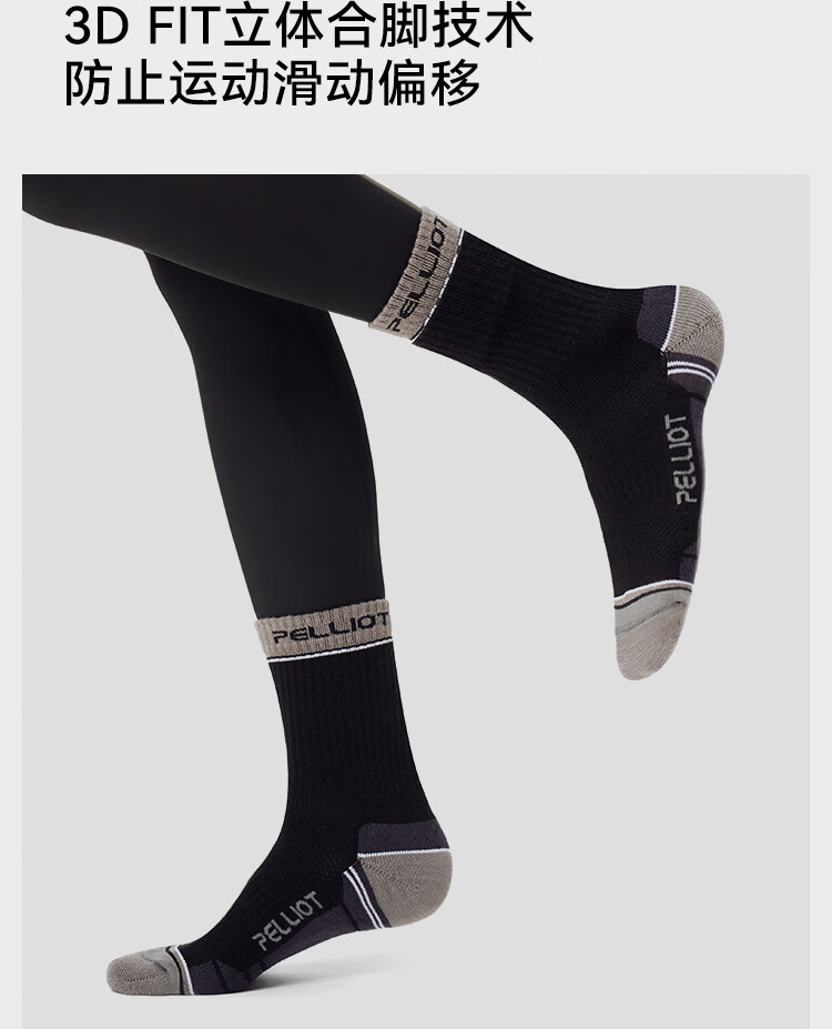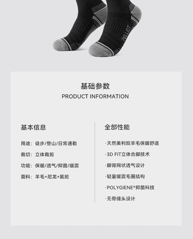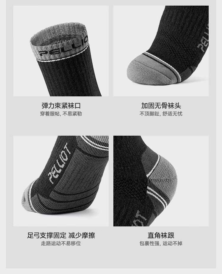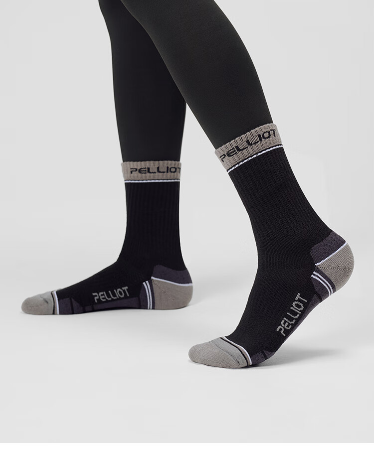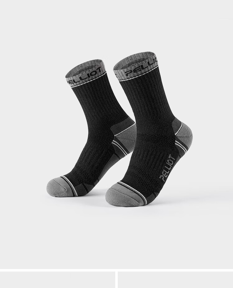 Pelliot outdoor hiking mid-calf winter socks merino wool running sports deodorant socks for men and women 165035008 obsidian black M