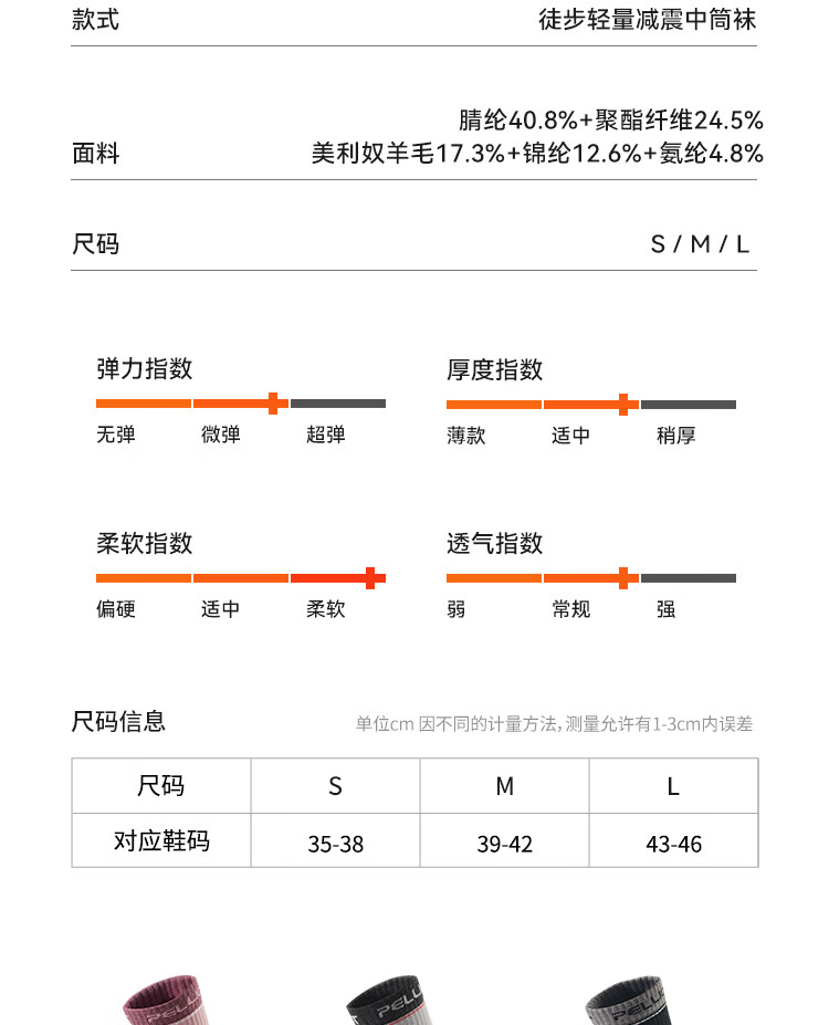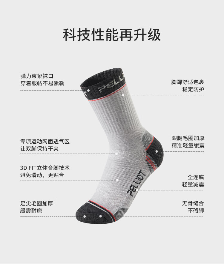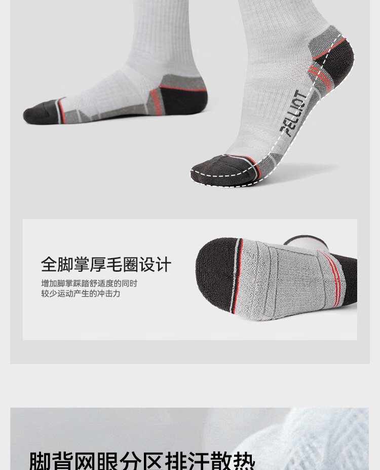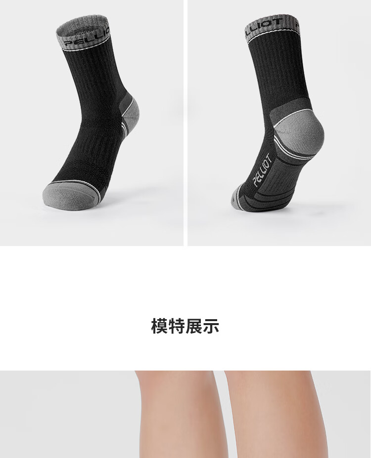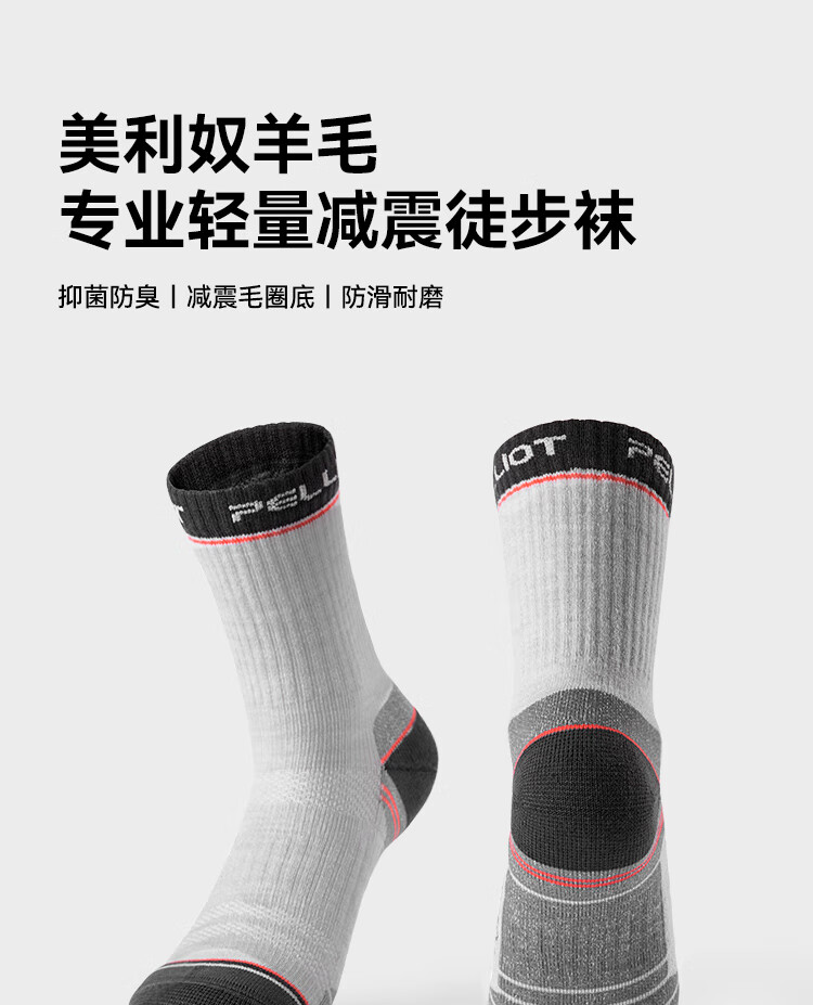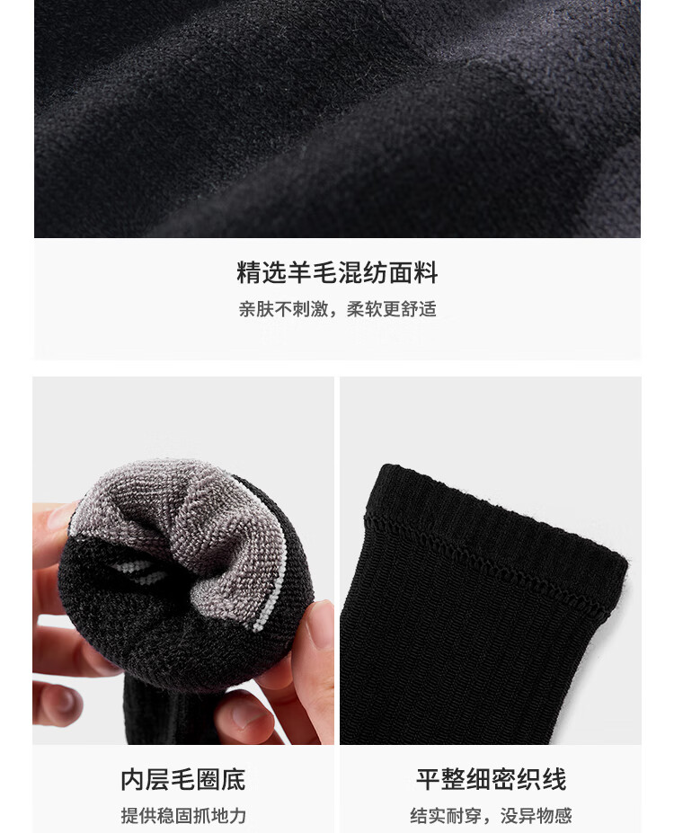 Pelliot outdoor hiking mid-calf winter socks merino wool running sports deodorant socks for men and women 165035008 obsidian black M
