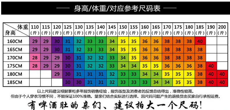 USA(inch) 28-30 30-32 32-34 34-38 38-42