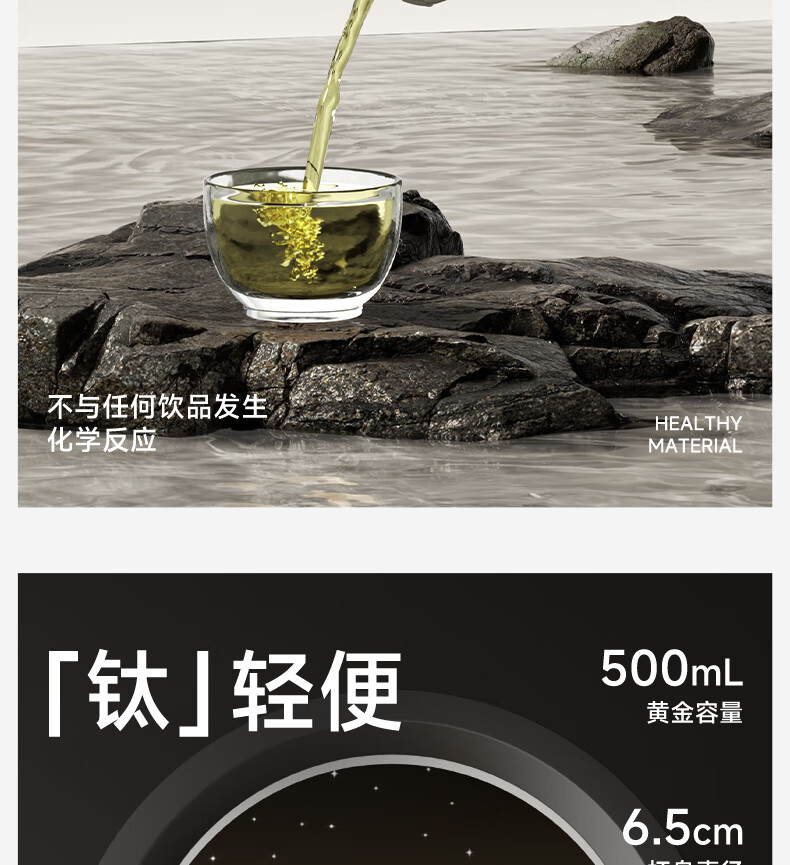 TOMIC pure titanium thermos cup with tea drain, portable car-mounted large-capacity accompanying water cup, men's and women's tea cup Double Eleven gift