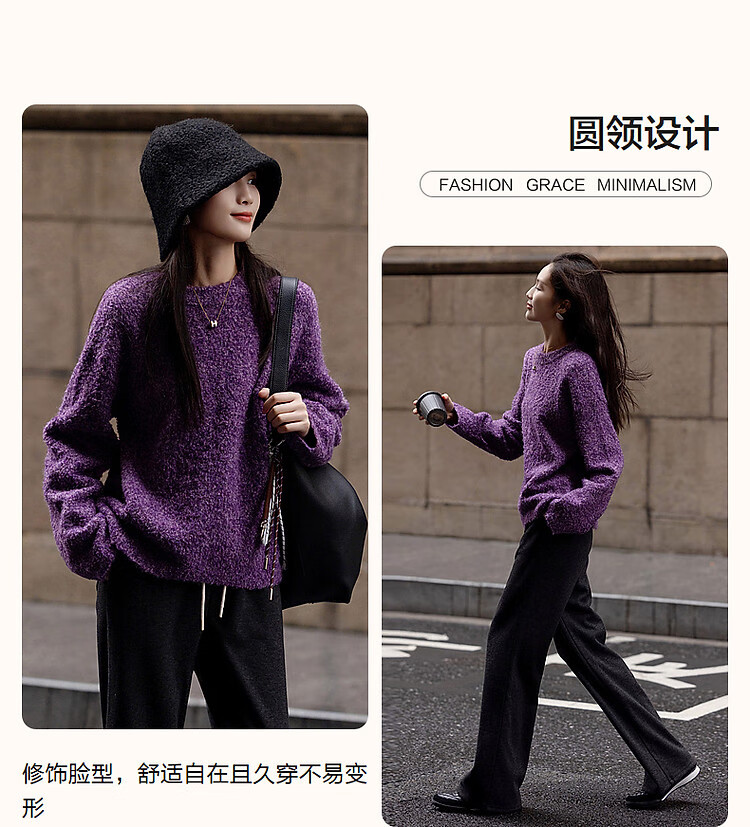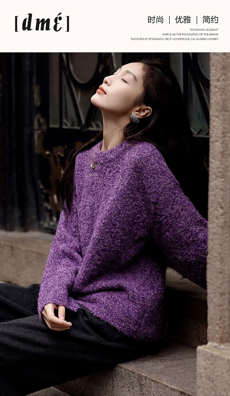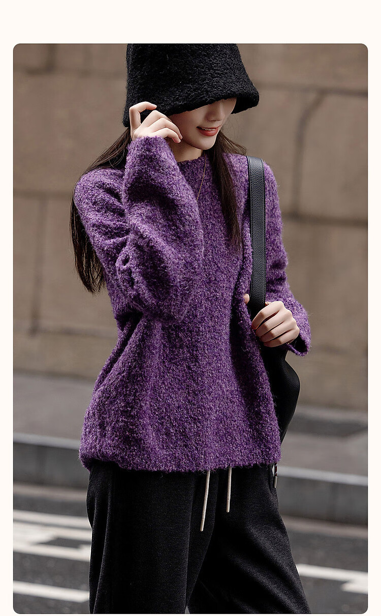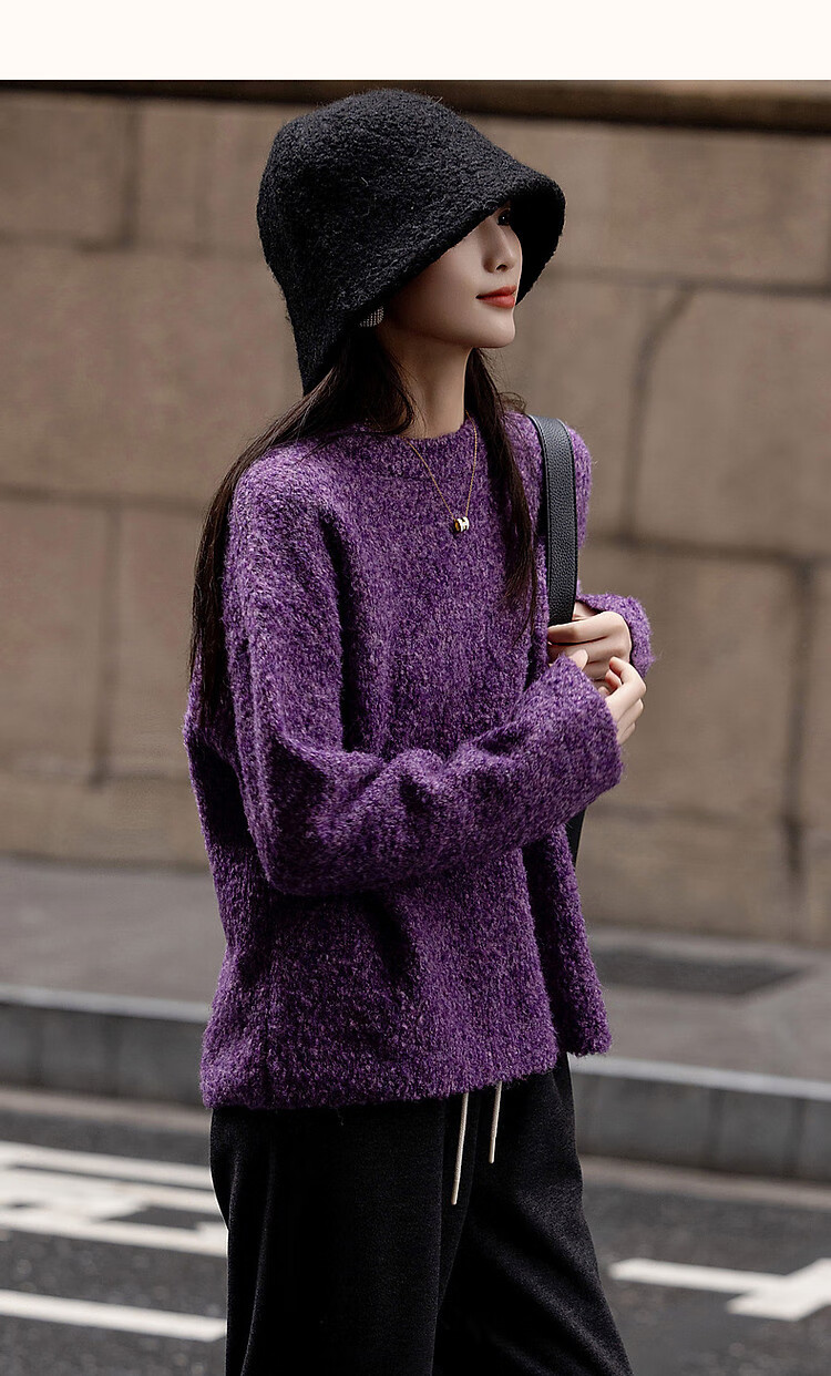 Demana Winter Dopamine Velvet Feel Fancy Wool Circle Sweater Lazy Loose Feeling Knitted Sweater Women's Top Eggplant Purple S