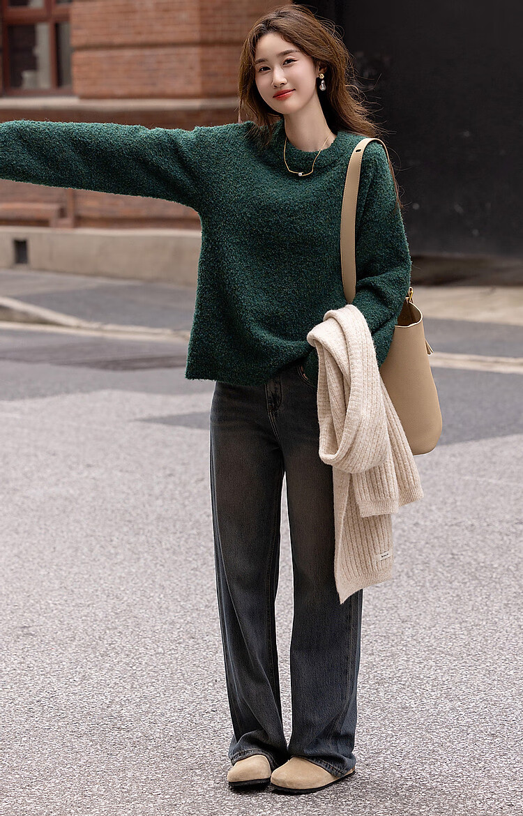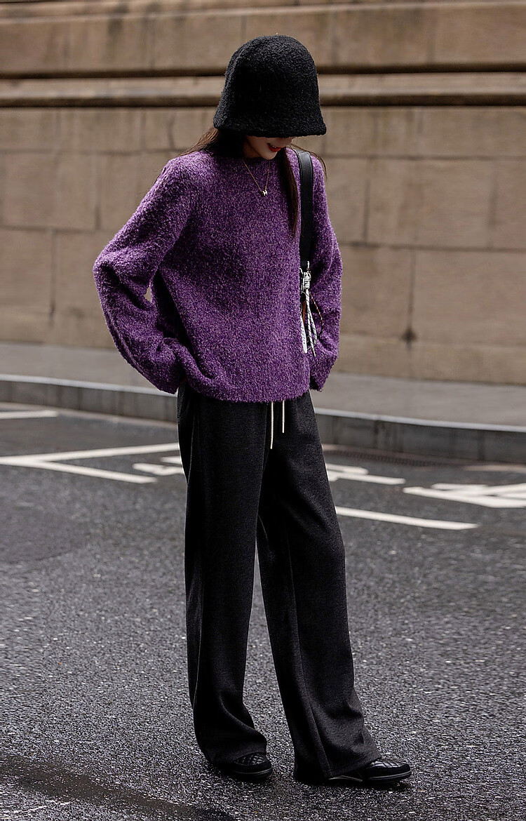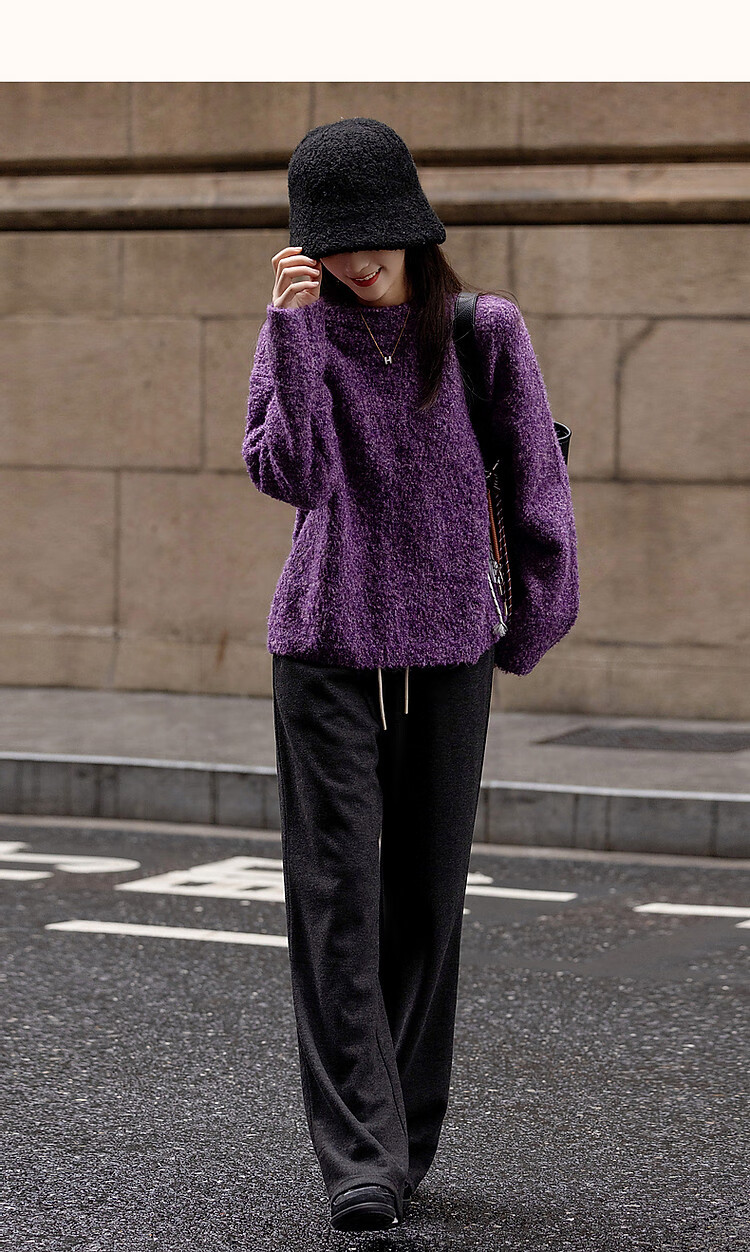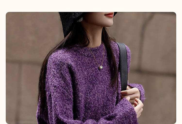 Demana Winter Dopamine Velvet Feel Fancy Wool Circle Sweater Lazy Loose Feeling Knitted Sweater Women's Top Eggplant Purple S