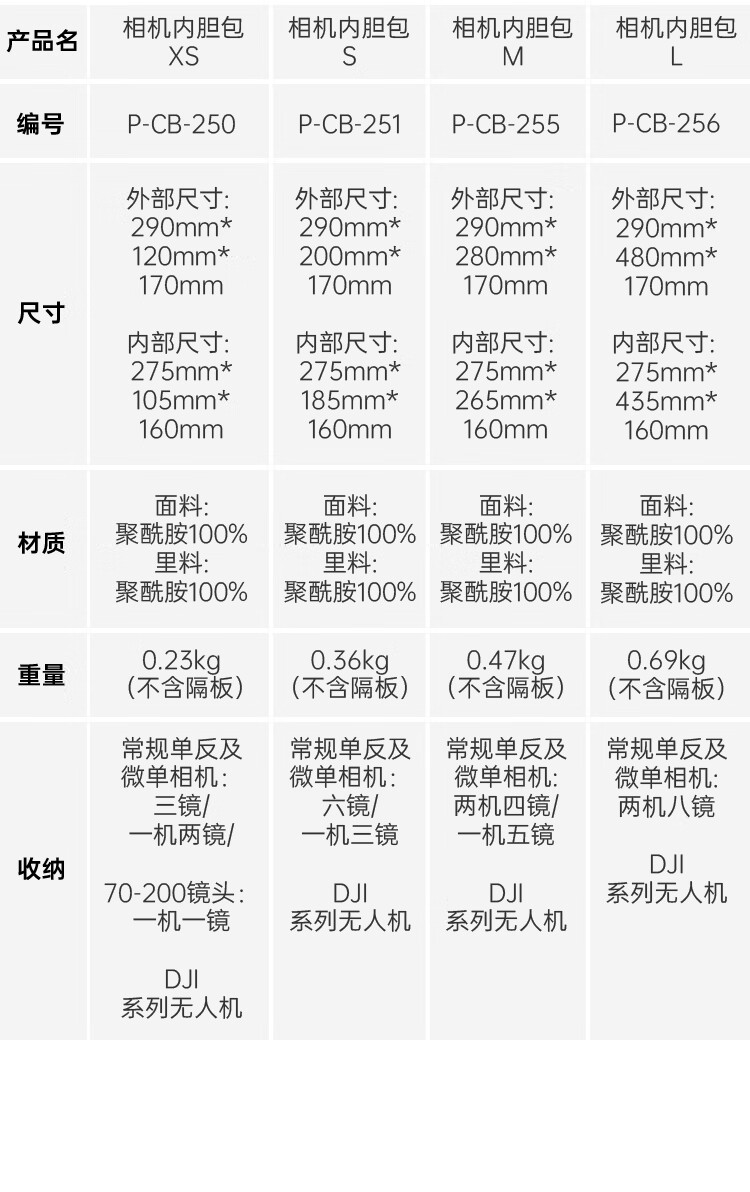 PGYTECH Camera Liner Bag SLR Lens Liner Storage Bag Shoulder Photography Bag Camera Bag DIY Partition Shockproof Portable Splash-proof Portable Storage M Code