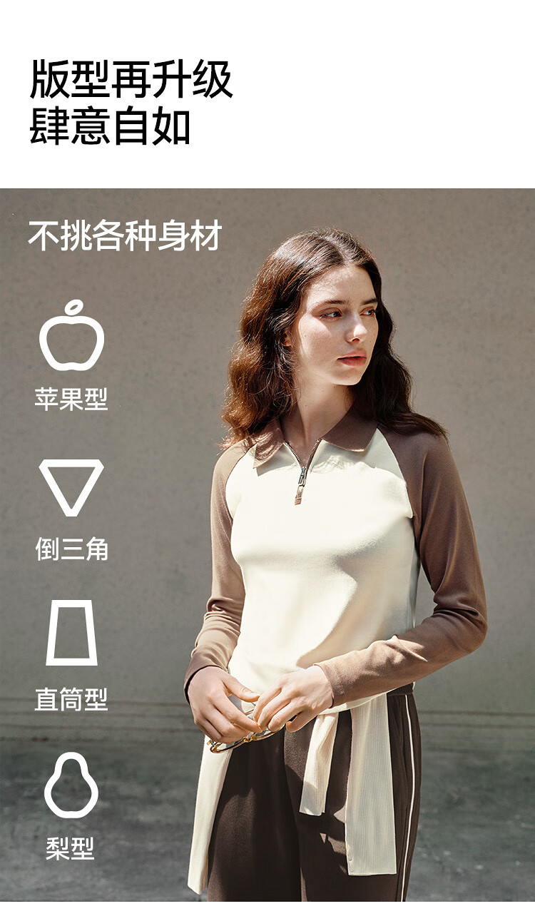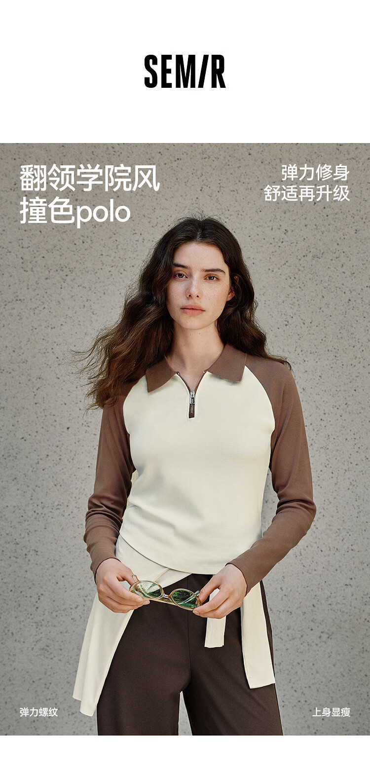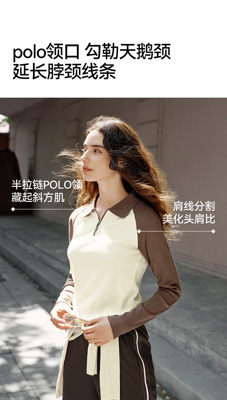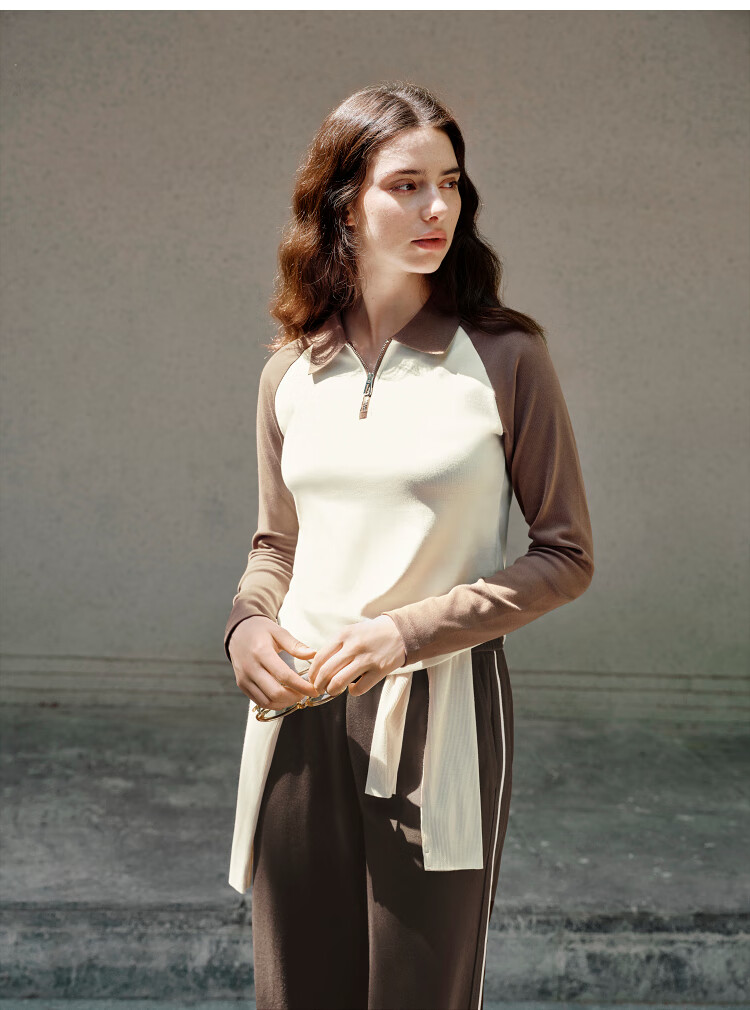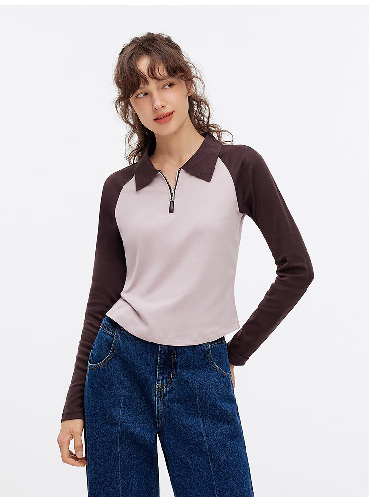 Semir POLO shirt women's short color-blocked raglan sleeve slim top small autumn slim pullover 101524115003