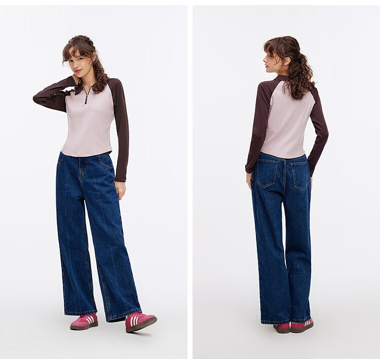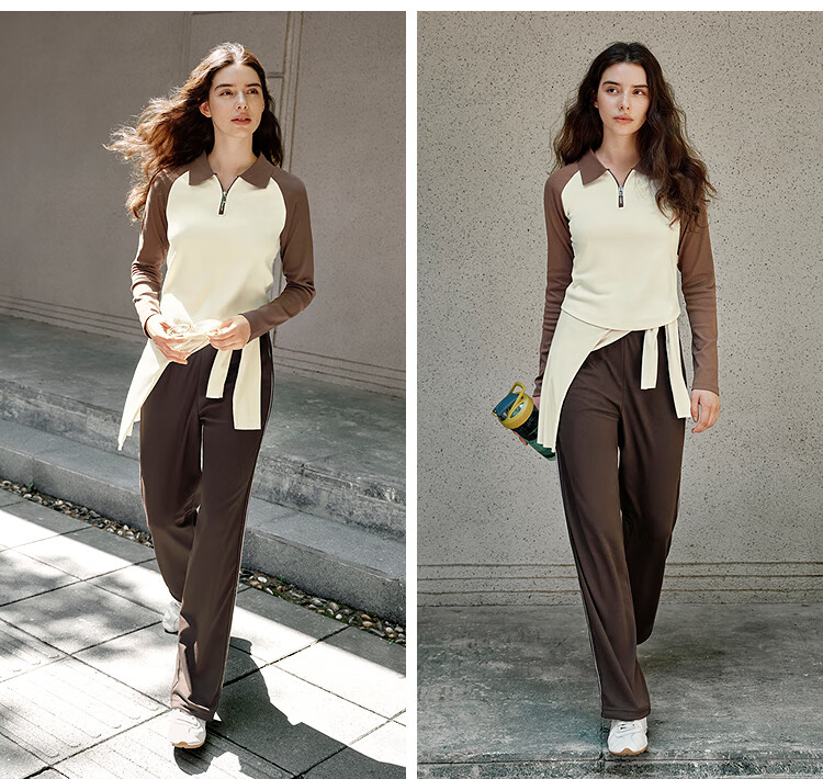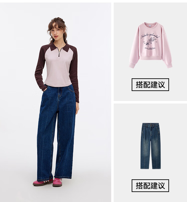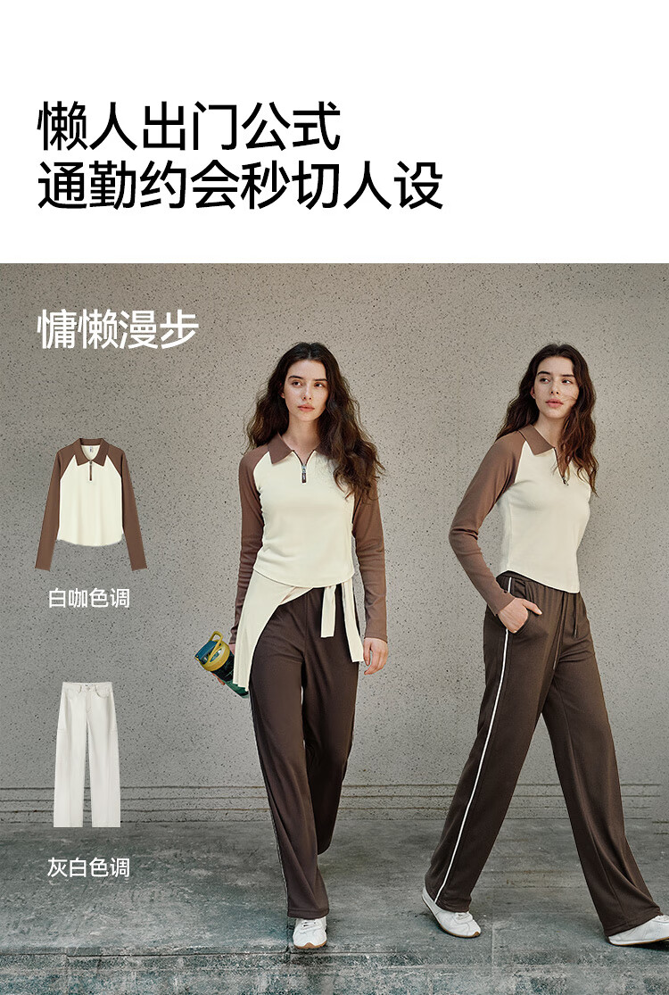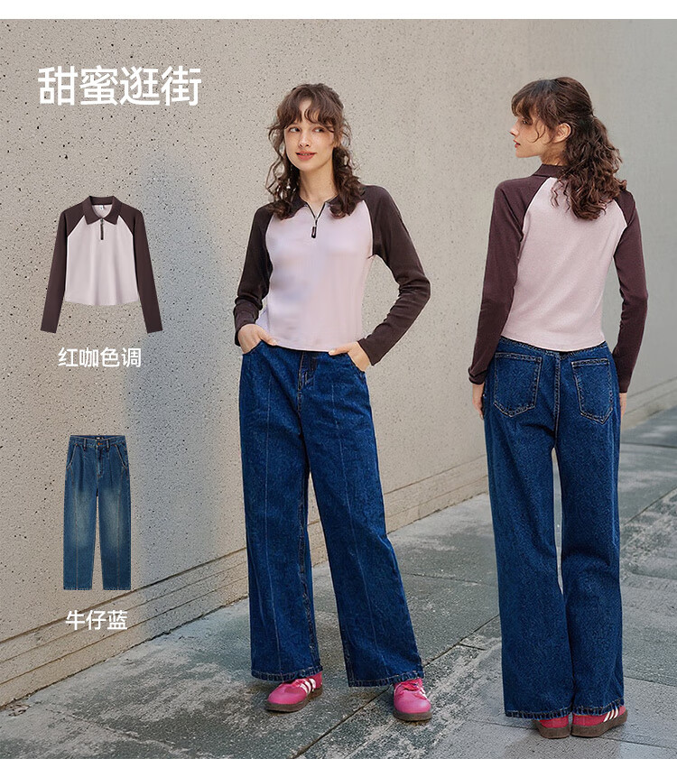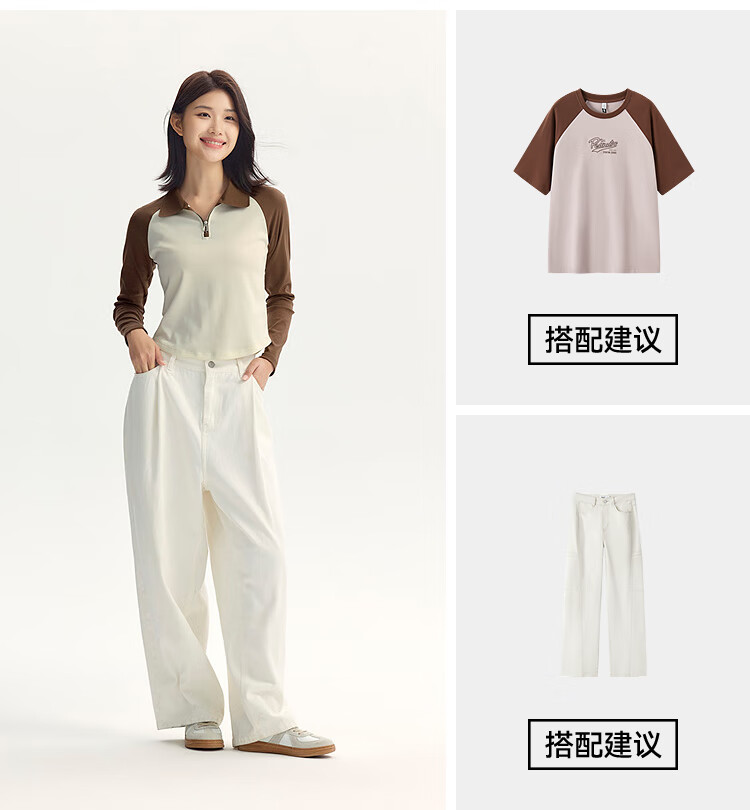 Semir POLO shirt women's short color-blocked raglan sleeve slim top small autumn slim pullover 101524115003