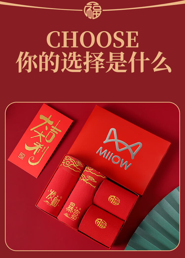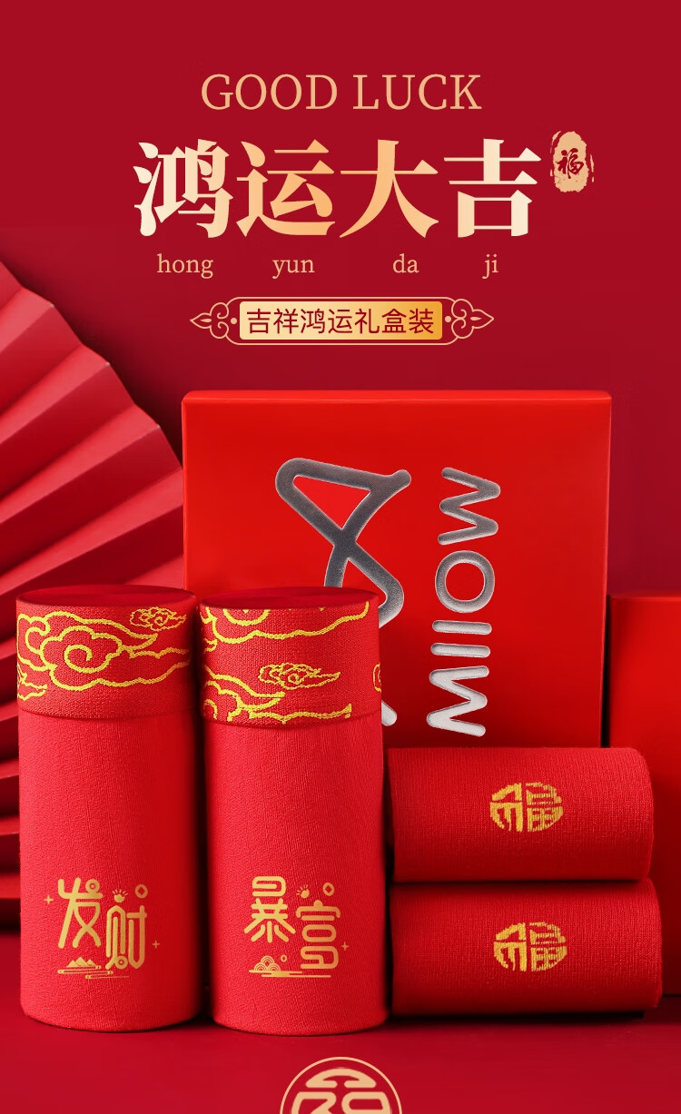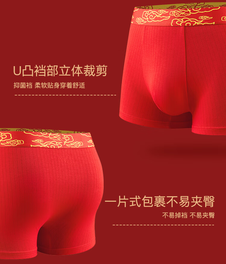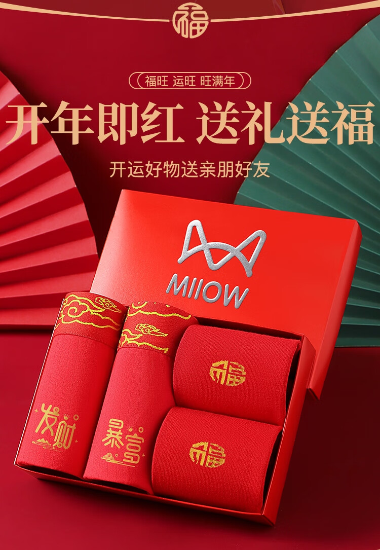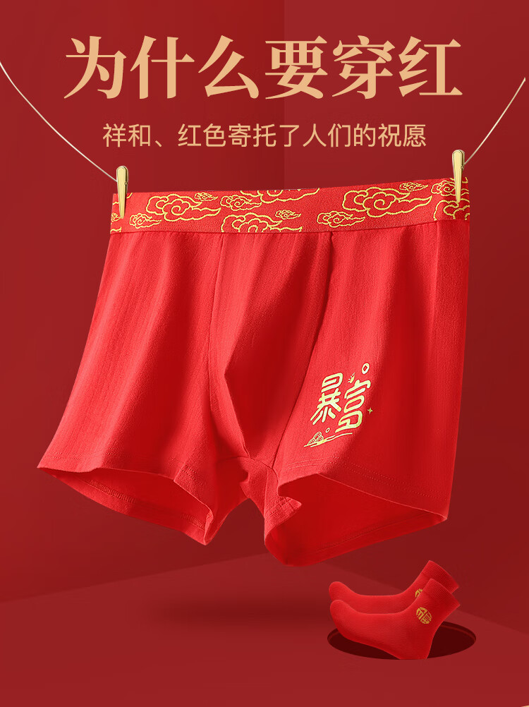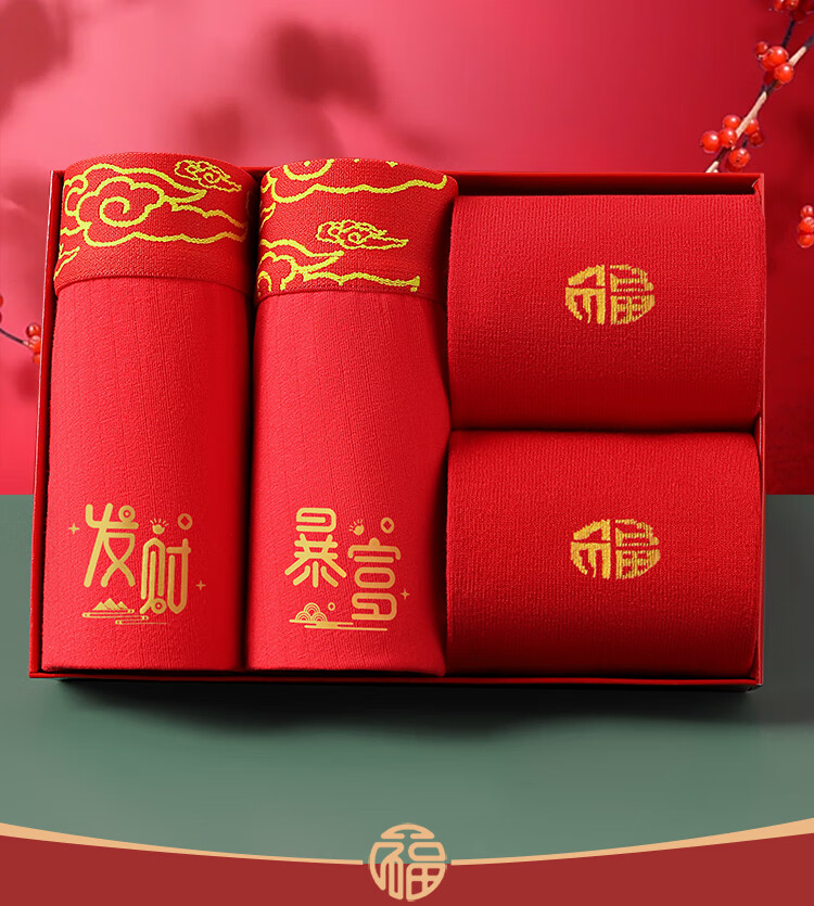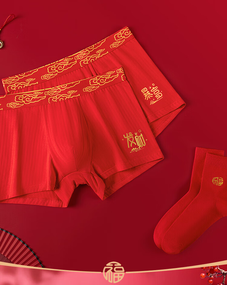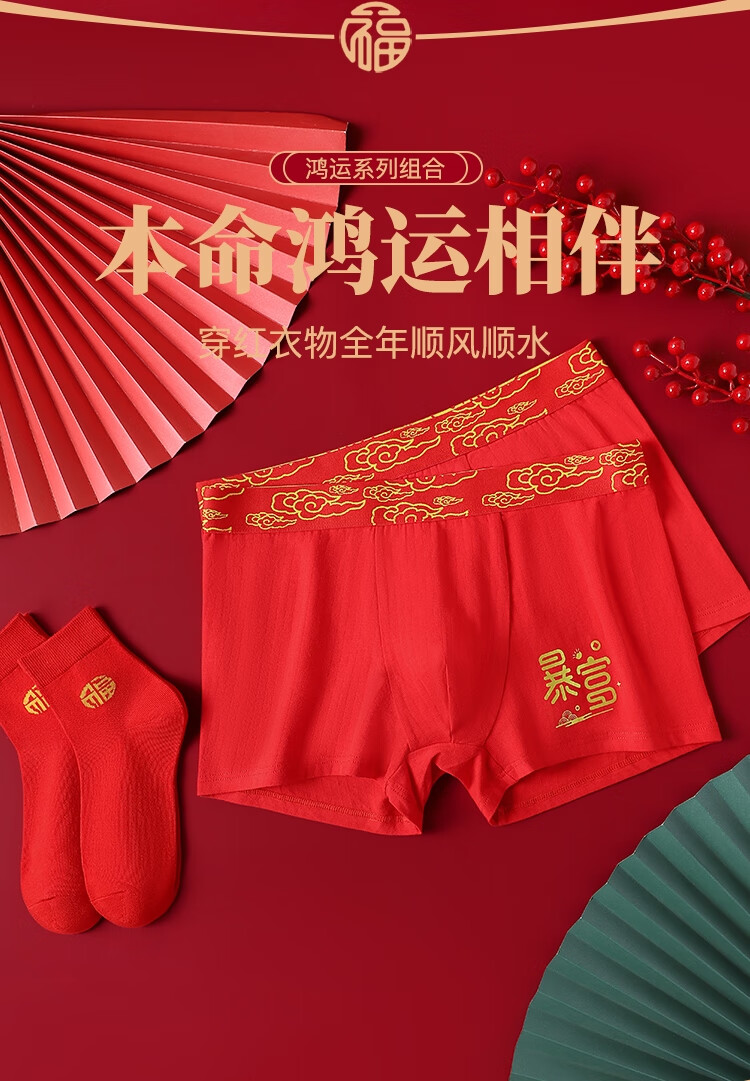 Cat Man Red Underwear Men's Zodiac Year Horse Year Men's Boxer Briefs Cotton Youth Antibacterial Boxer Briefs Red Socks Combination