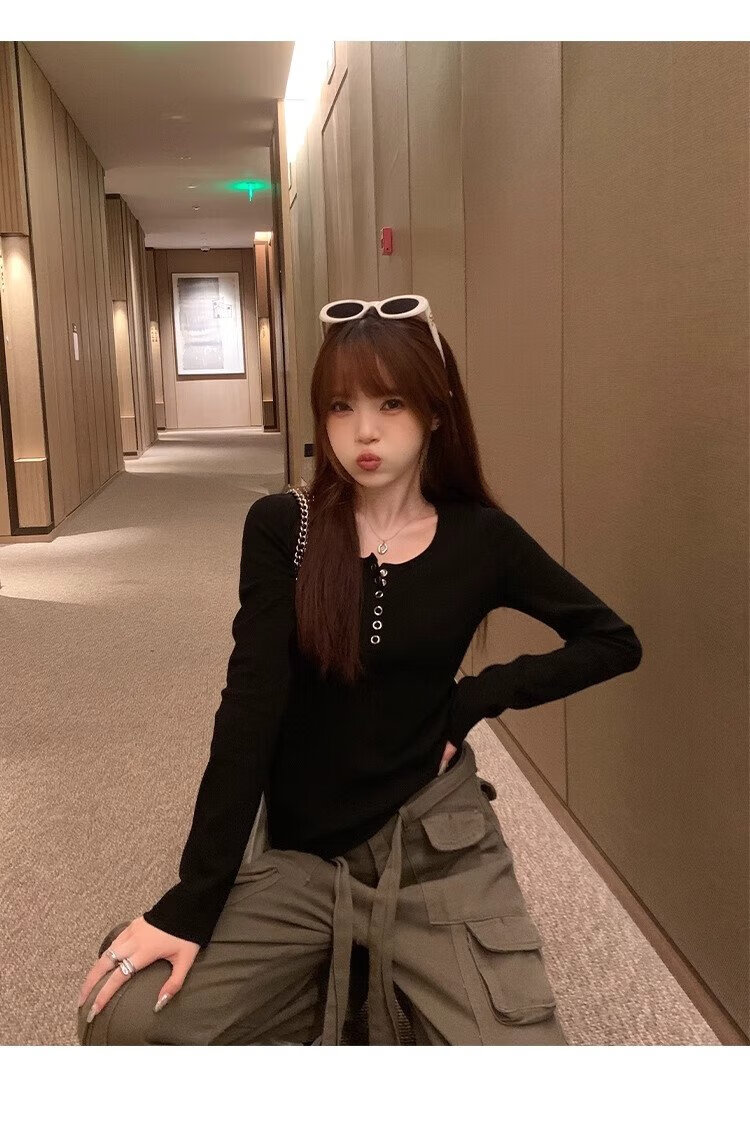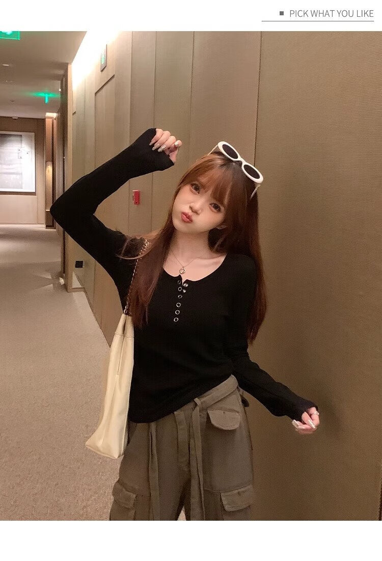 Yu Zhaolin's bottoming shirt for women 2024 new autumn and winter outer wear slim fit long-sleeved T-shirt threaded top