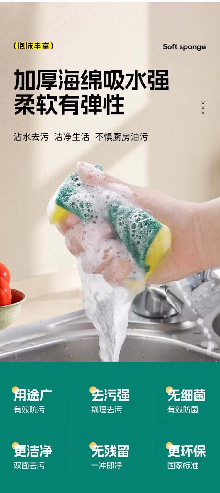 Xiwuyu sponge dishcloth, scouring pad, kitchen pot scrubbing artifact, sponge dishcloth, 10 pieces