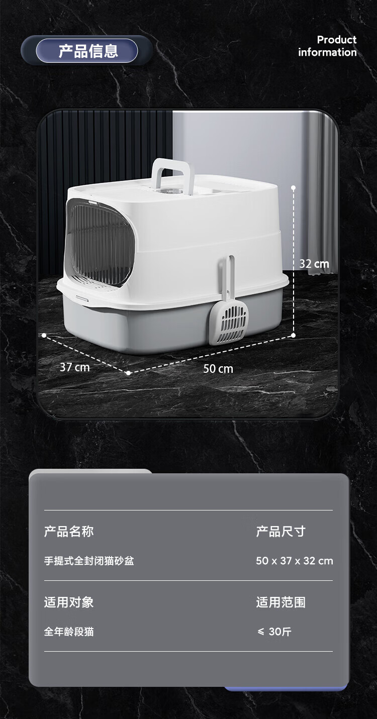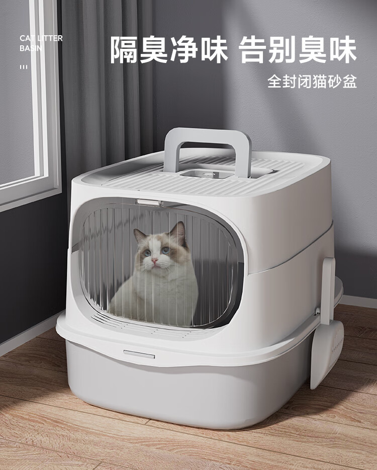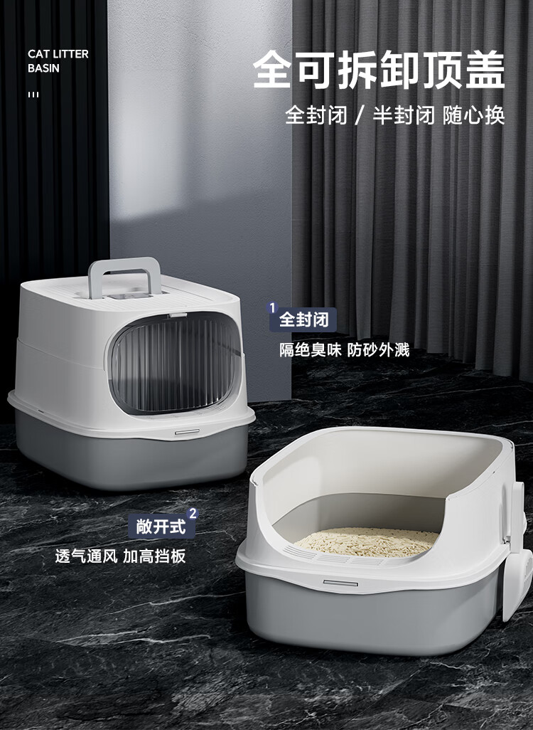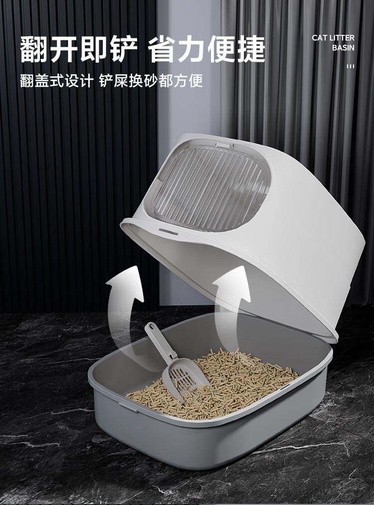 HELLOJOY cat litter box fully enclosed large cat toilet anti-splash cat litter box cat sand box cat litter box gray
