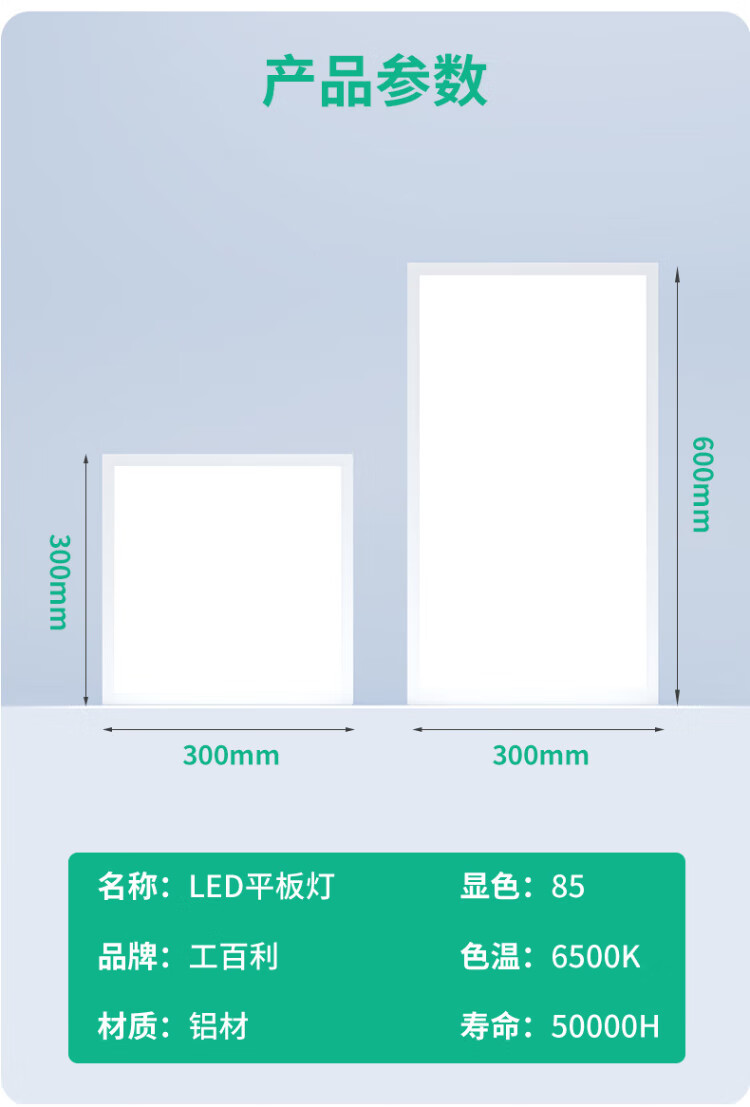 Gongbaili flat panel light gusset light 300x600led flat panel light ceiling light aluminum gusset light integrated ceiling light square panel light commercial office laboratory shopping mall 24W