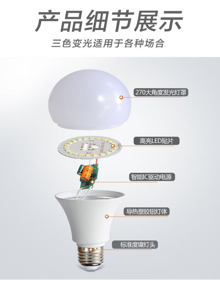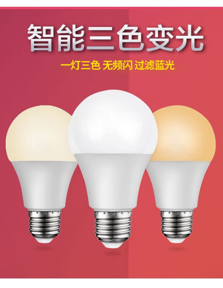 Guan'an LED light bulb constant current energy-saving light bulb E27 screw smart three-color dimming bulb 15W Beijing warehouse delivery