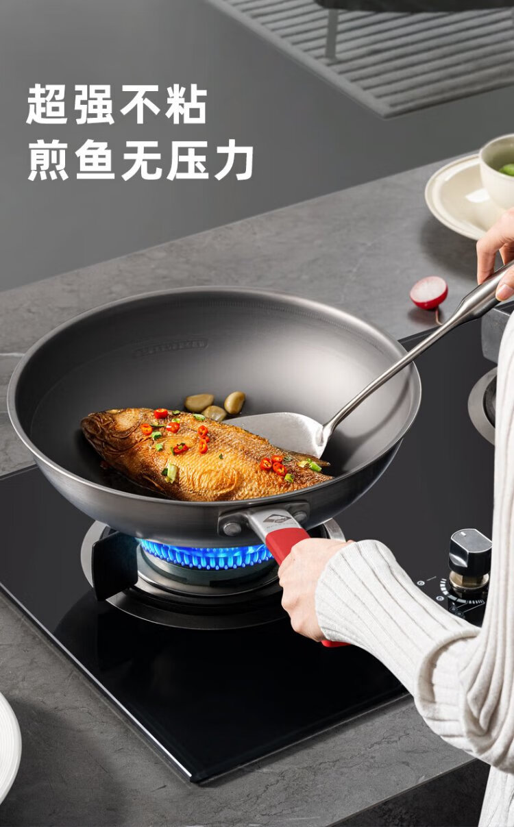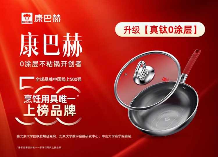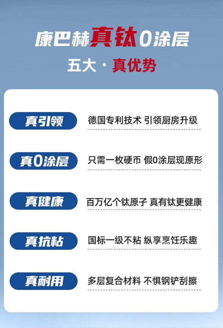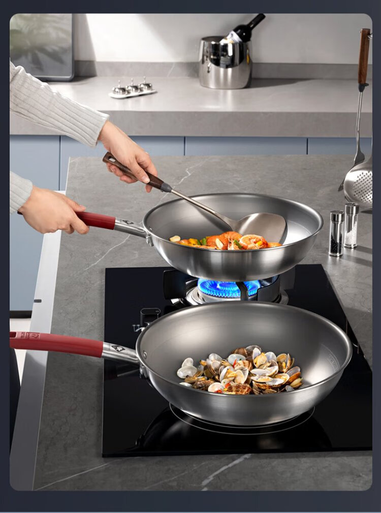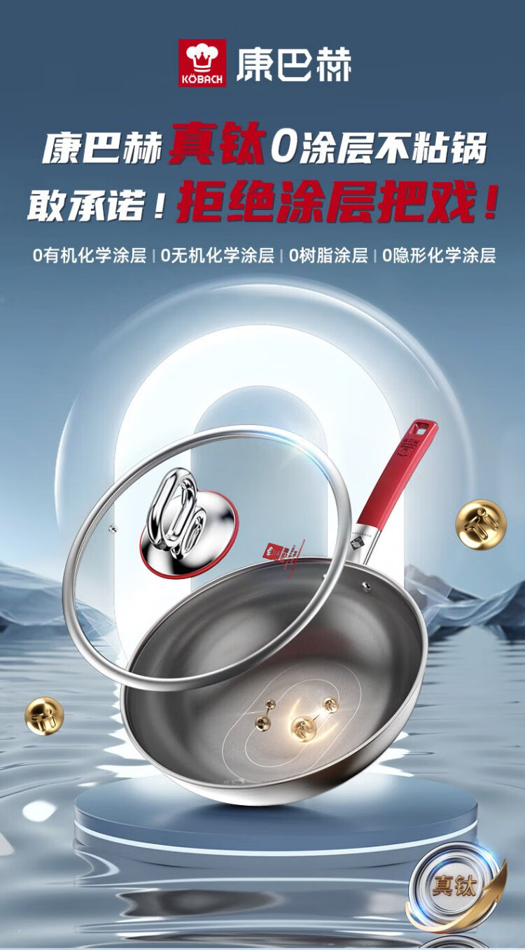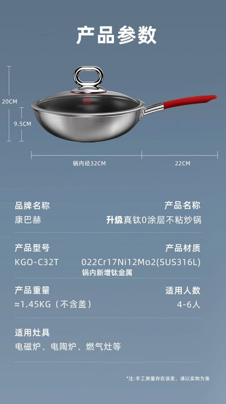 Konbach (KBH) real titanium 0-coated antibacterial wok uncoated non-stick pan 316L stainless steel wok induction cooker gas universal