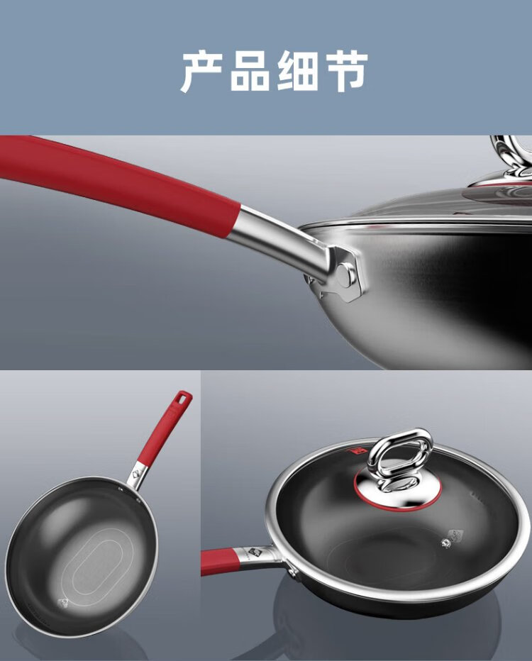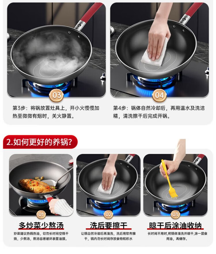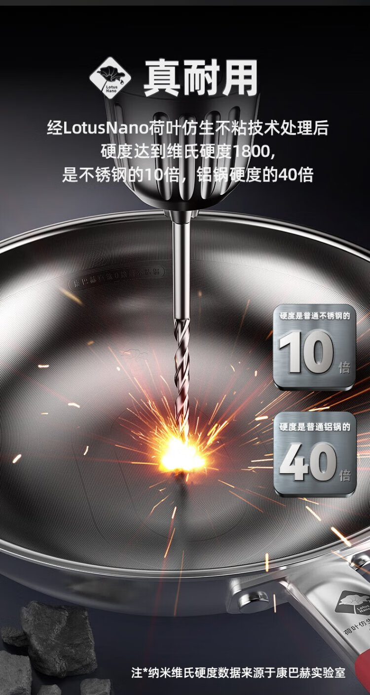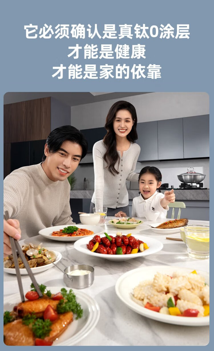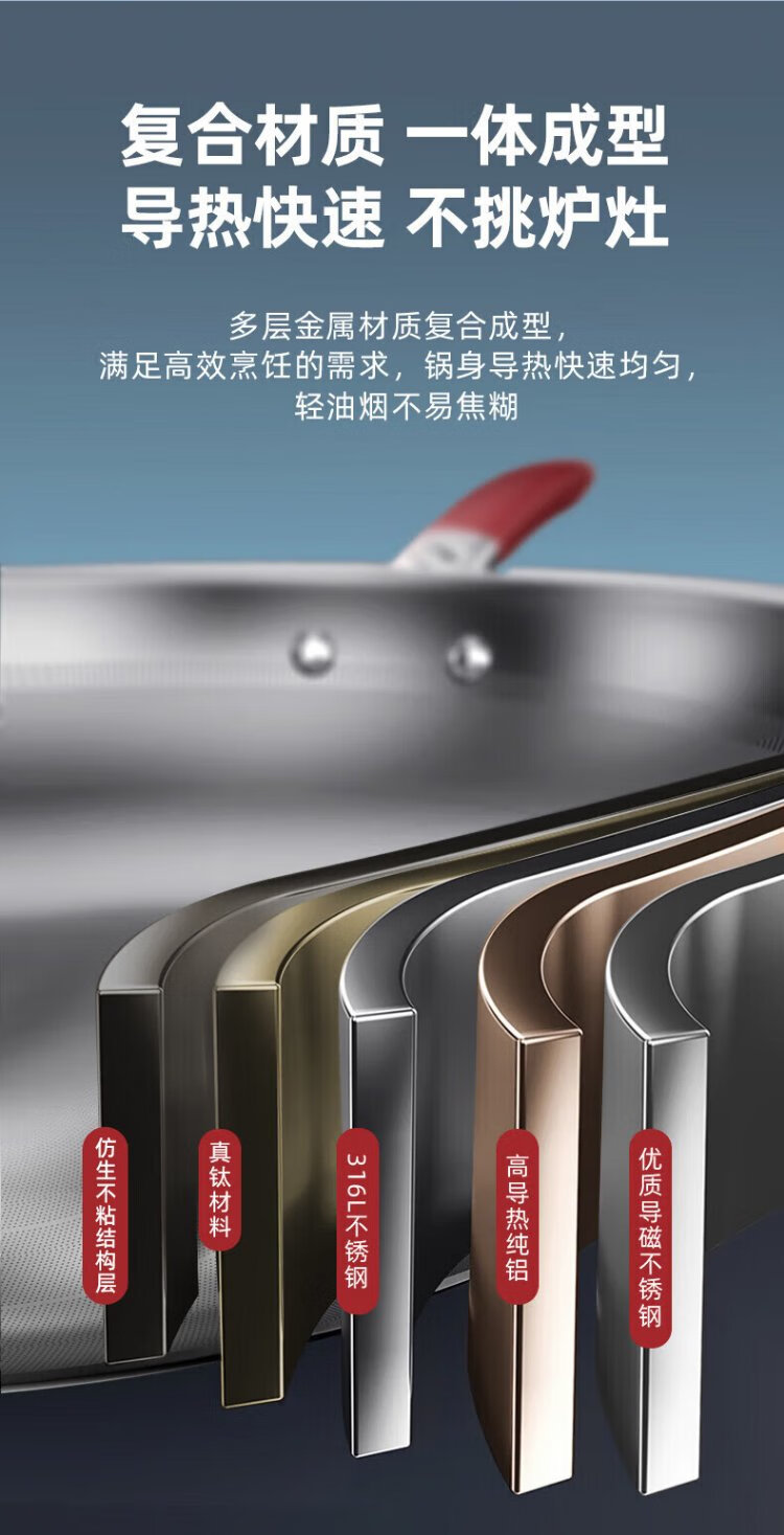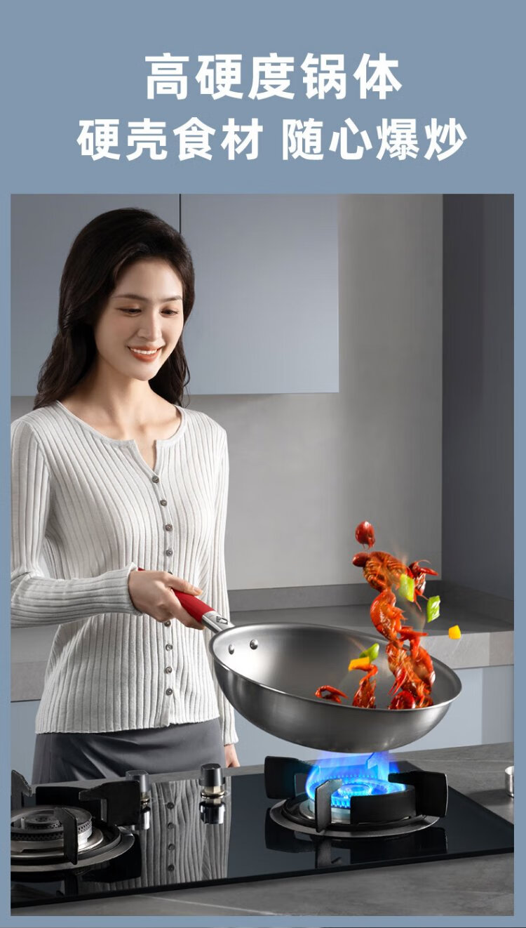 Konbach (KBH) real titanium 0-coated antibacterial wok uncoated non-stick pan 316L stainless steel wok induction cooker gas universal