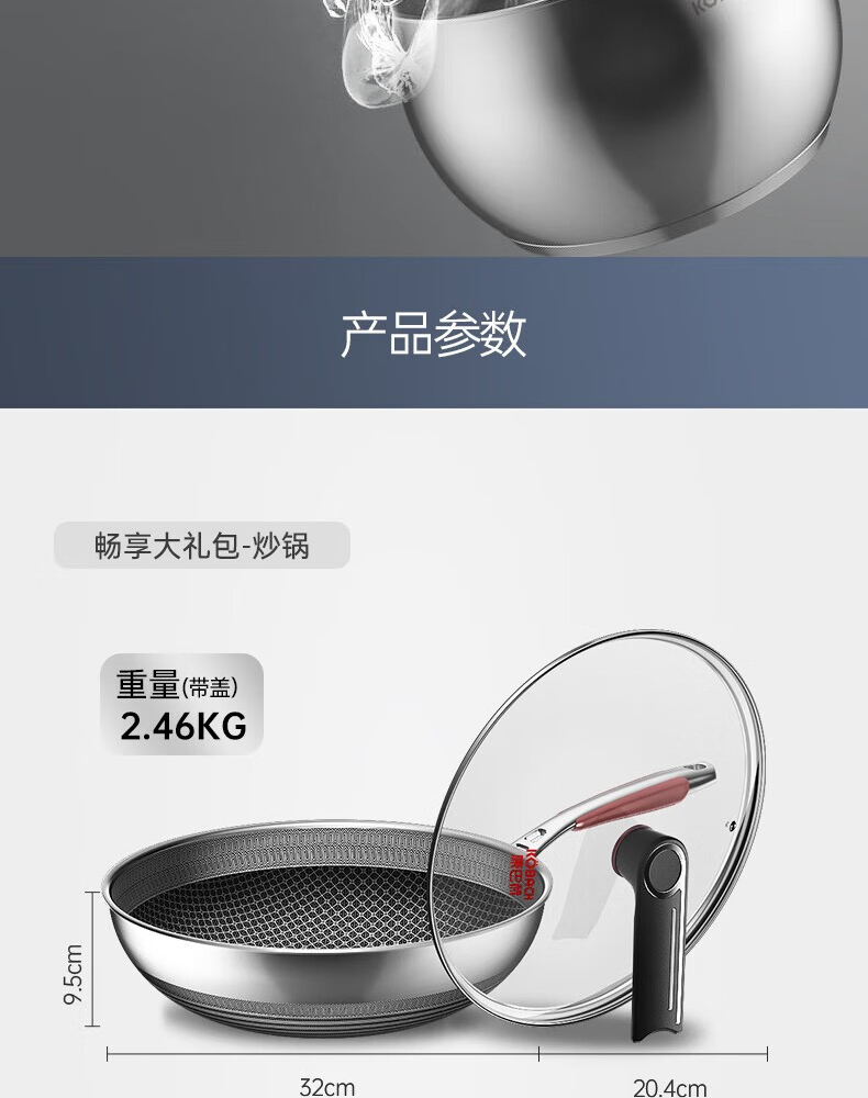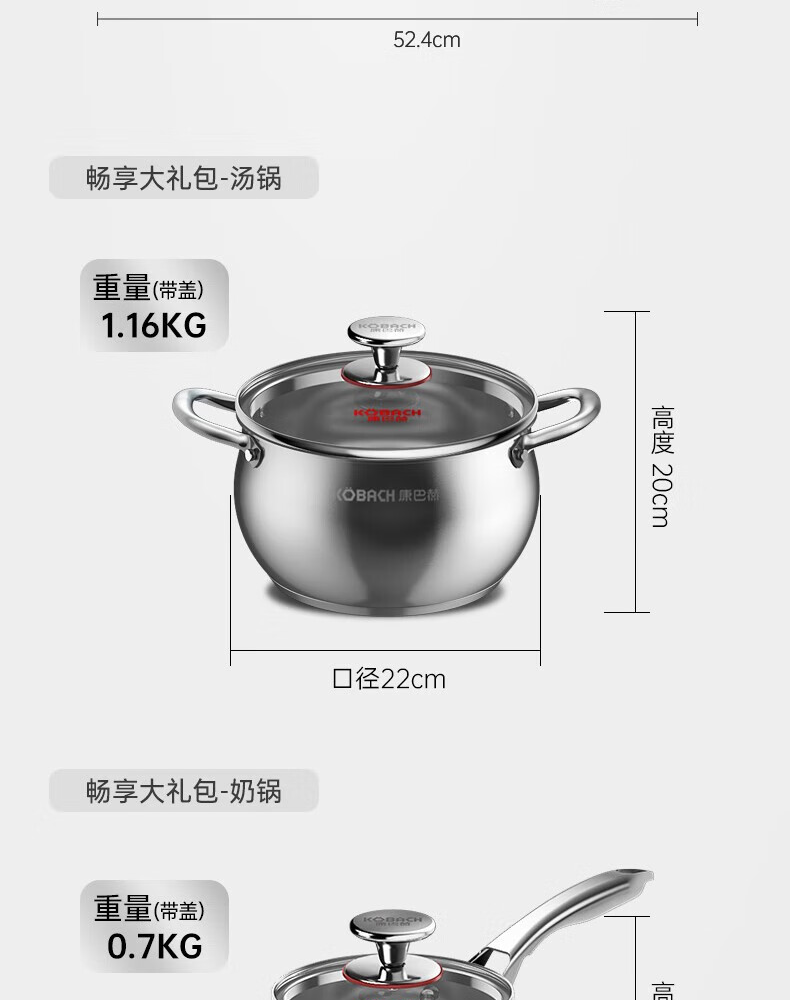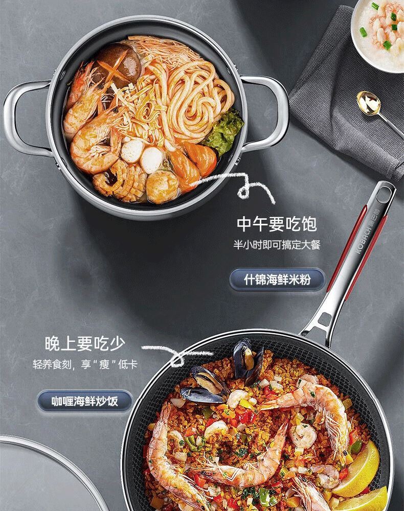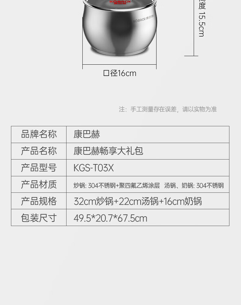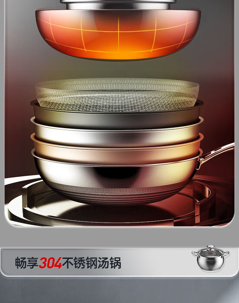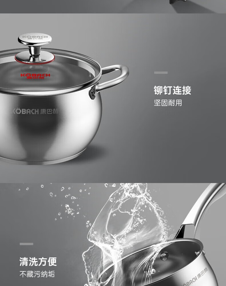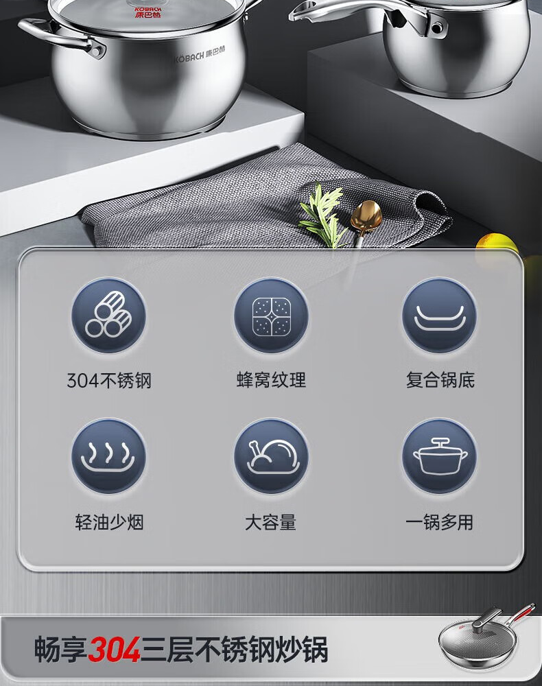 Konbach (KBH) pot set stainless steel non-stick wok household three-piece soup pot milk pot wok combination set