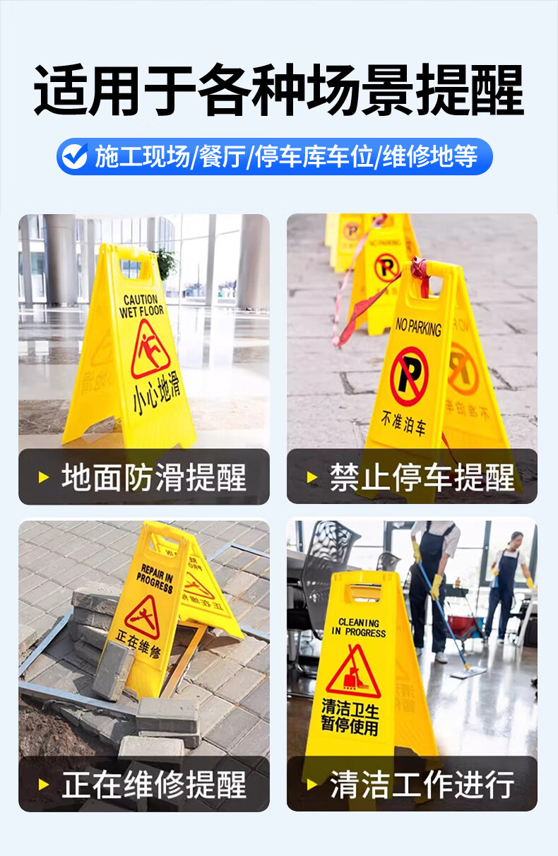 Zhunhang beware of slippery floor warning sign A-shaped warning sign safety instruction sign slippery floor prompt for subway shopping mall cleaning