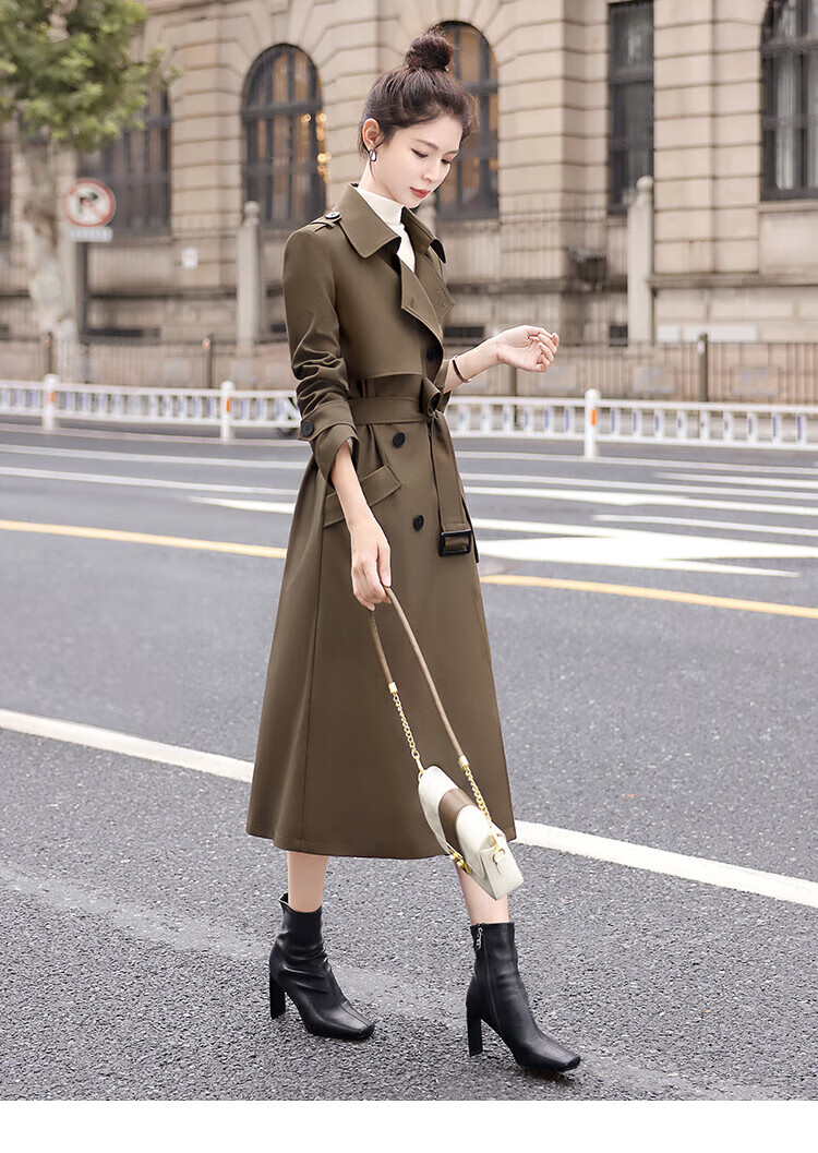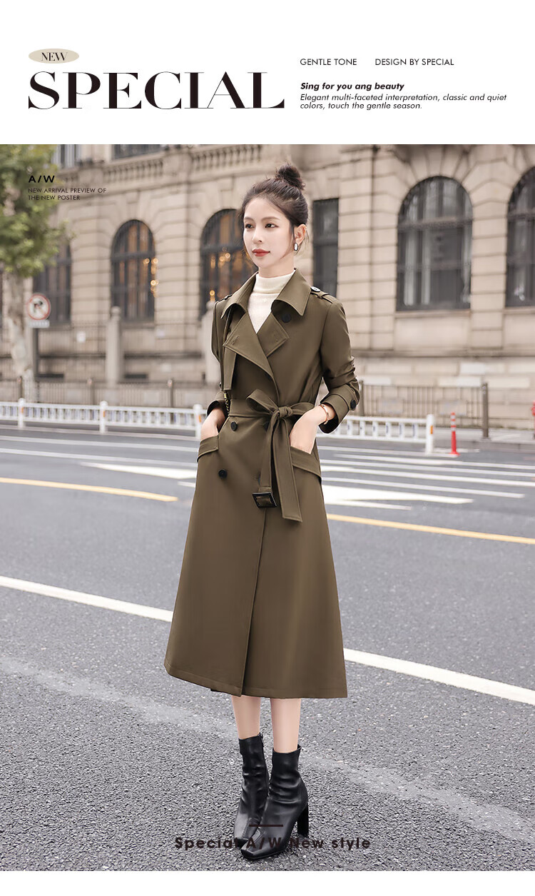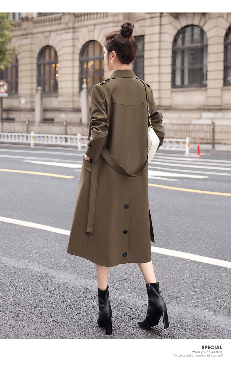 Sibaishe Temperament Windbreaker 2025 Autumn New Women's British Style Simple Slim Medium Long Jacket