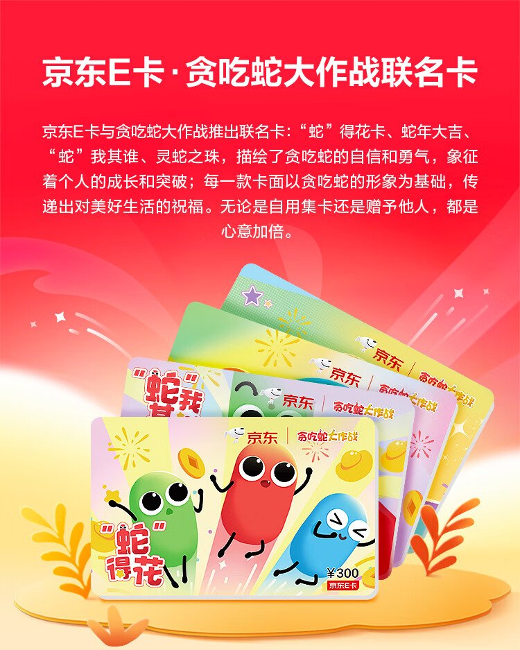 Jingdong E Card Snake Year Card 300 yuan (physical card) official self-operated gift card/shopping card/pickup card/gift/prize/game/birthday