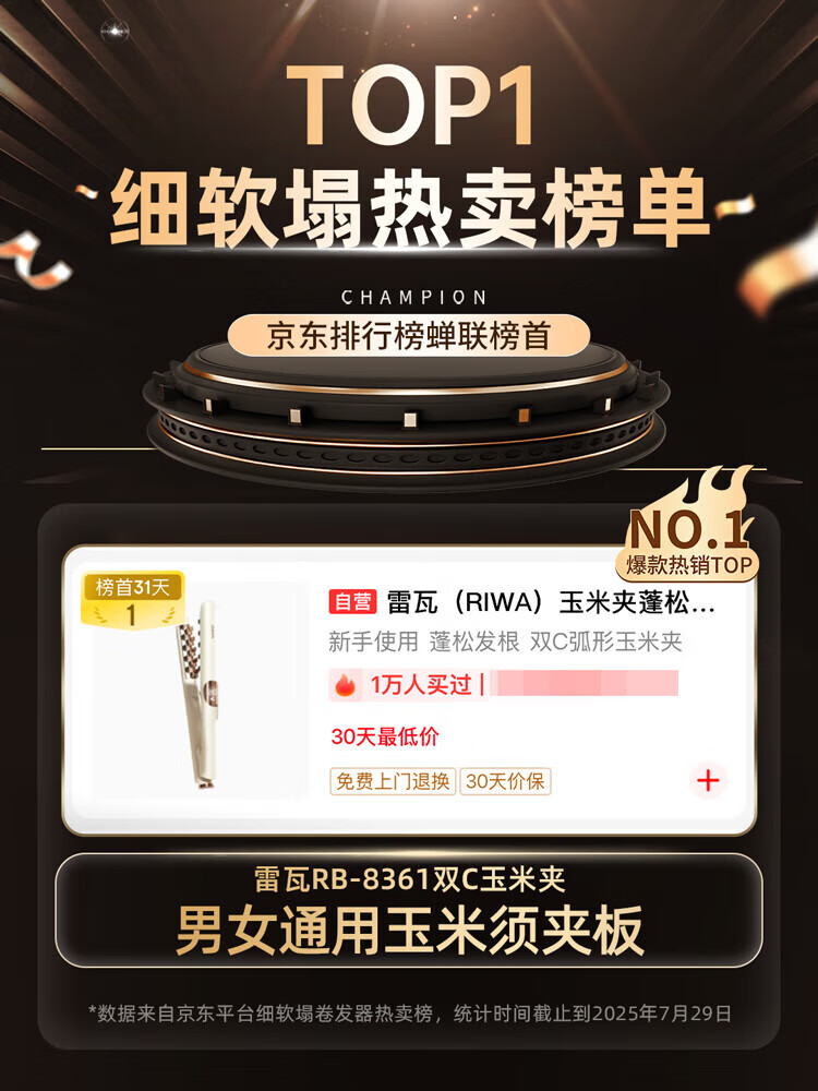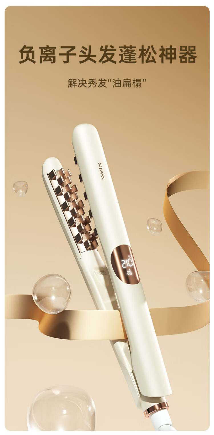RIWA corn clip fluffy splint mini portable corn silk splint curved high skull pad hair root artifact negative ion men and women perm curling iron birthday gift RB-8361