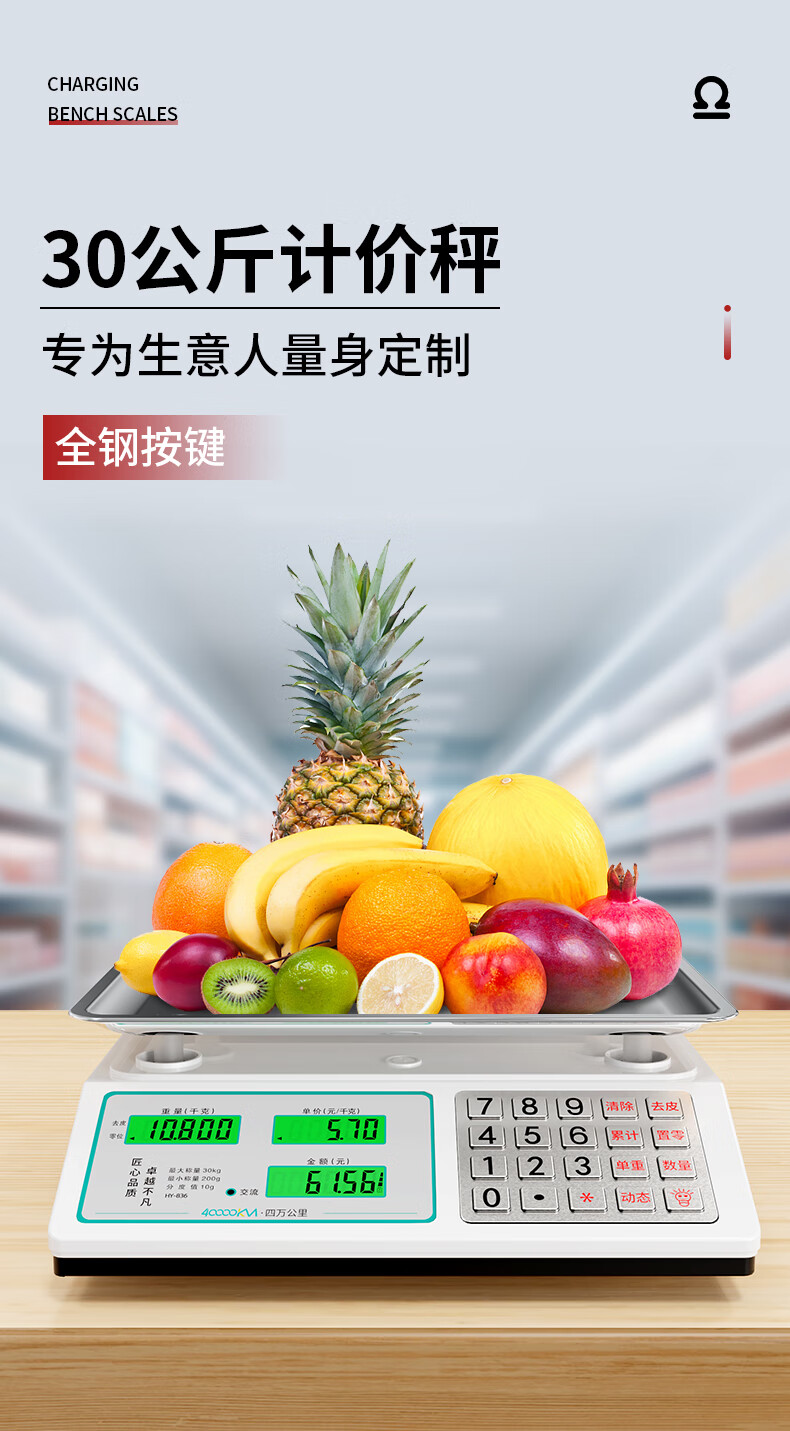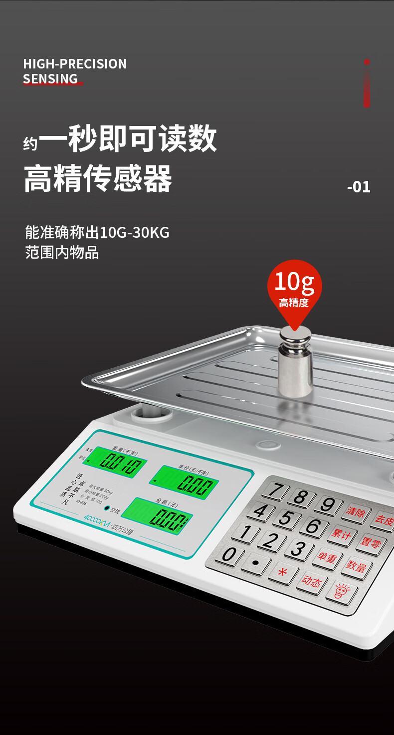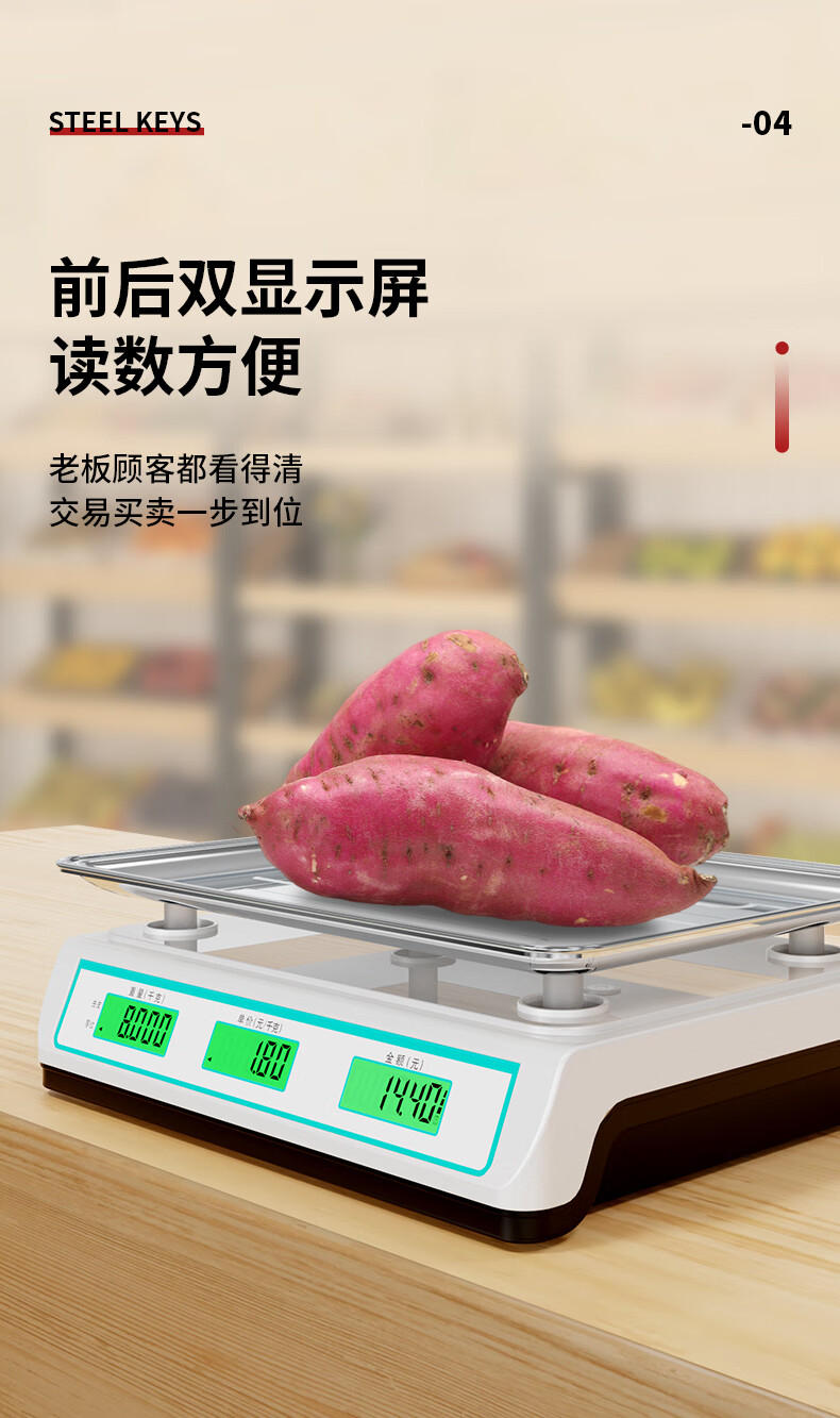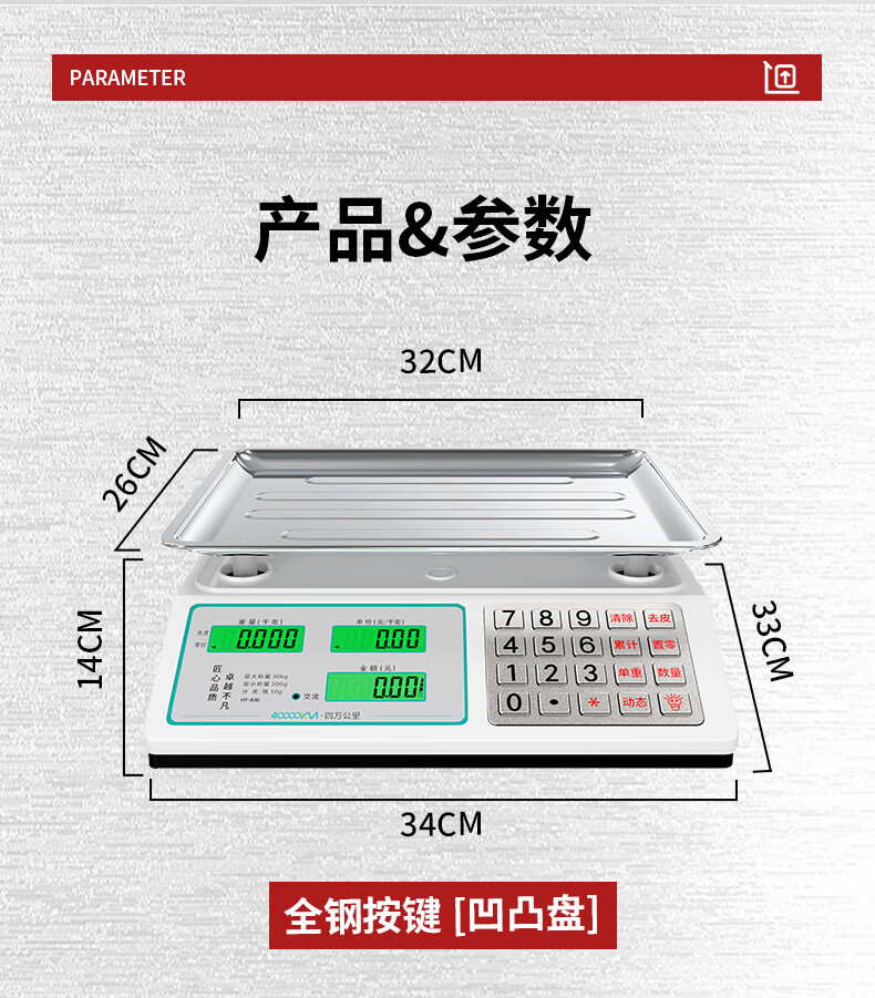 Forty thousand kilometers (40000KM) electronic scale commercial weighing concave plate 30KG pricing scale vegetable market supermarket anti-shake special scale for selling vegetables fruit household kilogram electronic scale