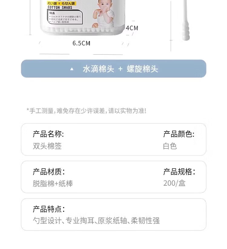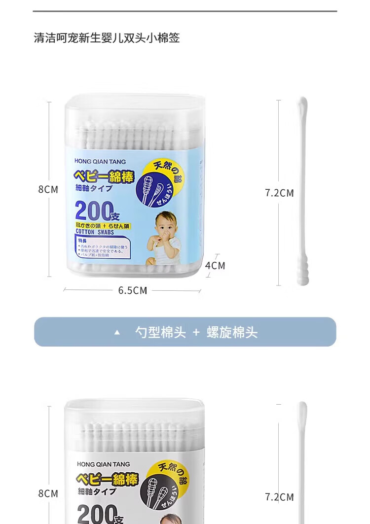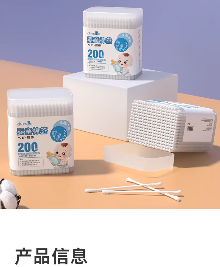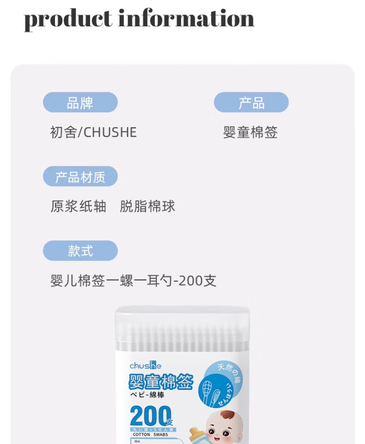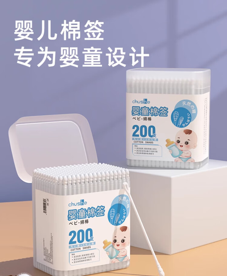 CHUSHE (CHUSHE) baby cotton swabs 400 pieces, specially designed for babies to pick out ears and boogers, small head ear scoops, thin cotton swabs for infants and newborns