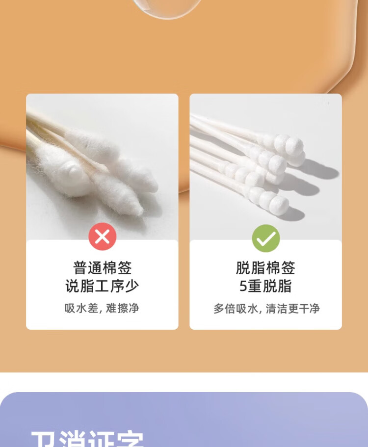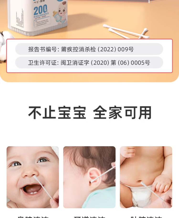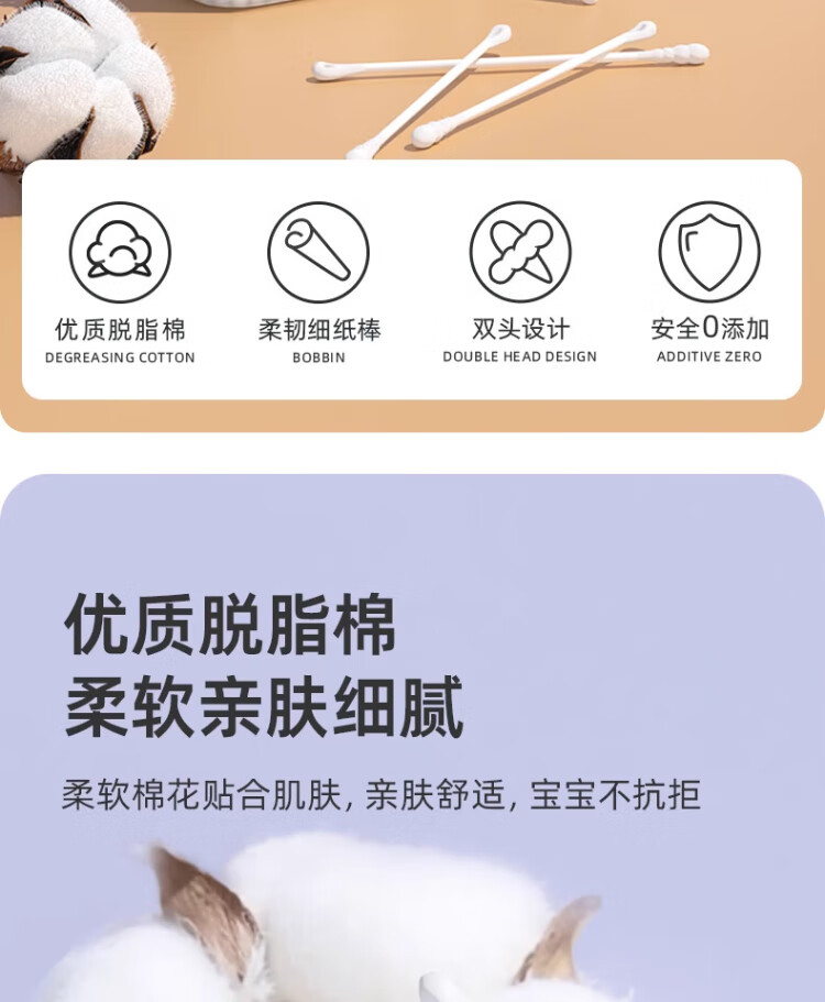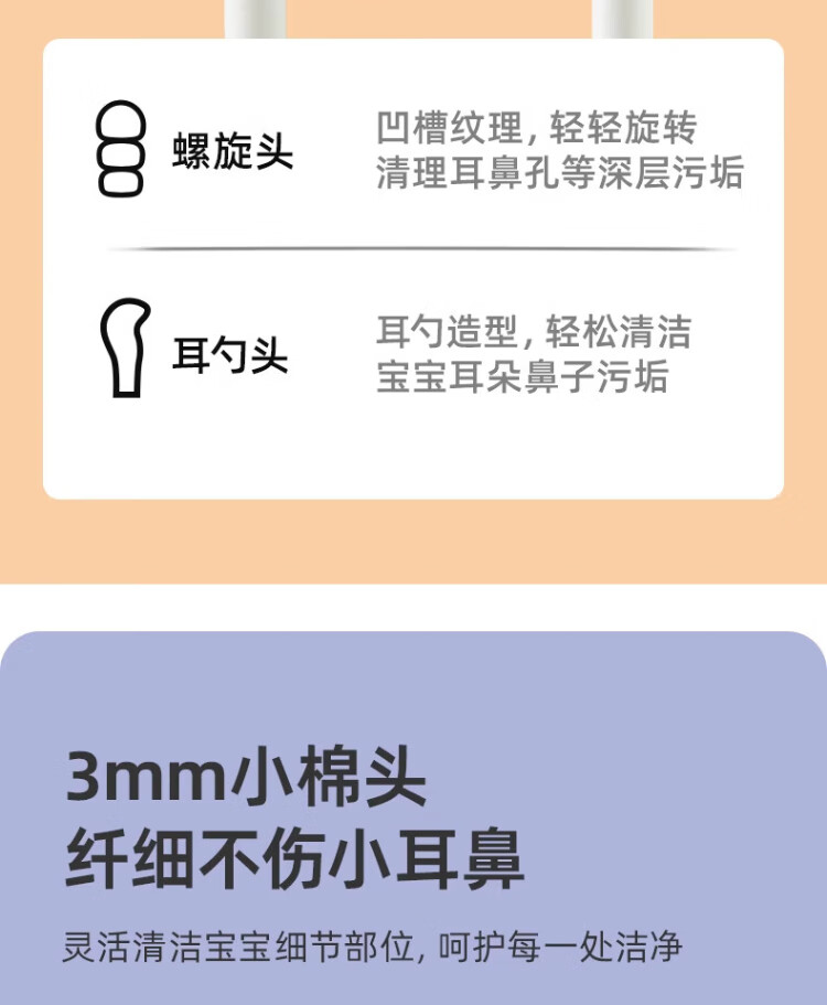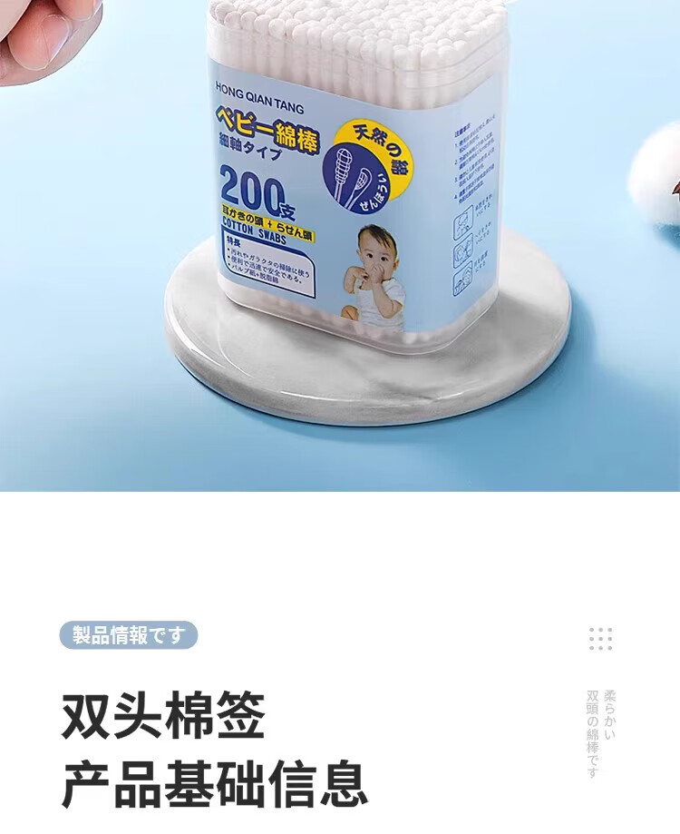 CHUSHE (CHUSHE) baby cotton swabs 400 pieces, specially designed for babies to pick out ears and boogers, small head ear scoops, thin cotton swabs for infants and newborns