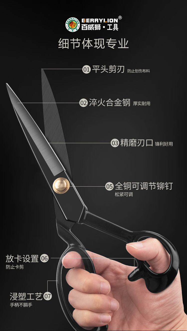 BERRYLION professional tailoring scissors clothing cutting cloth sewing tailor scissors household sewing scissors 12 inches 300mm