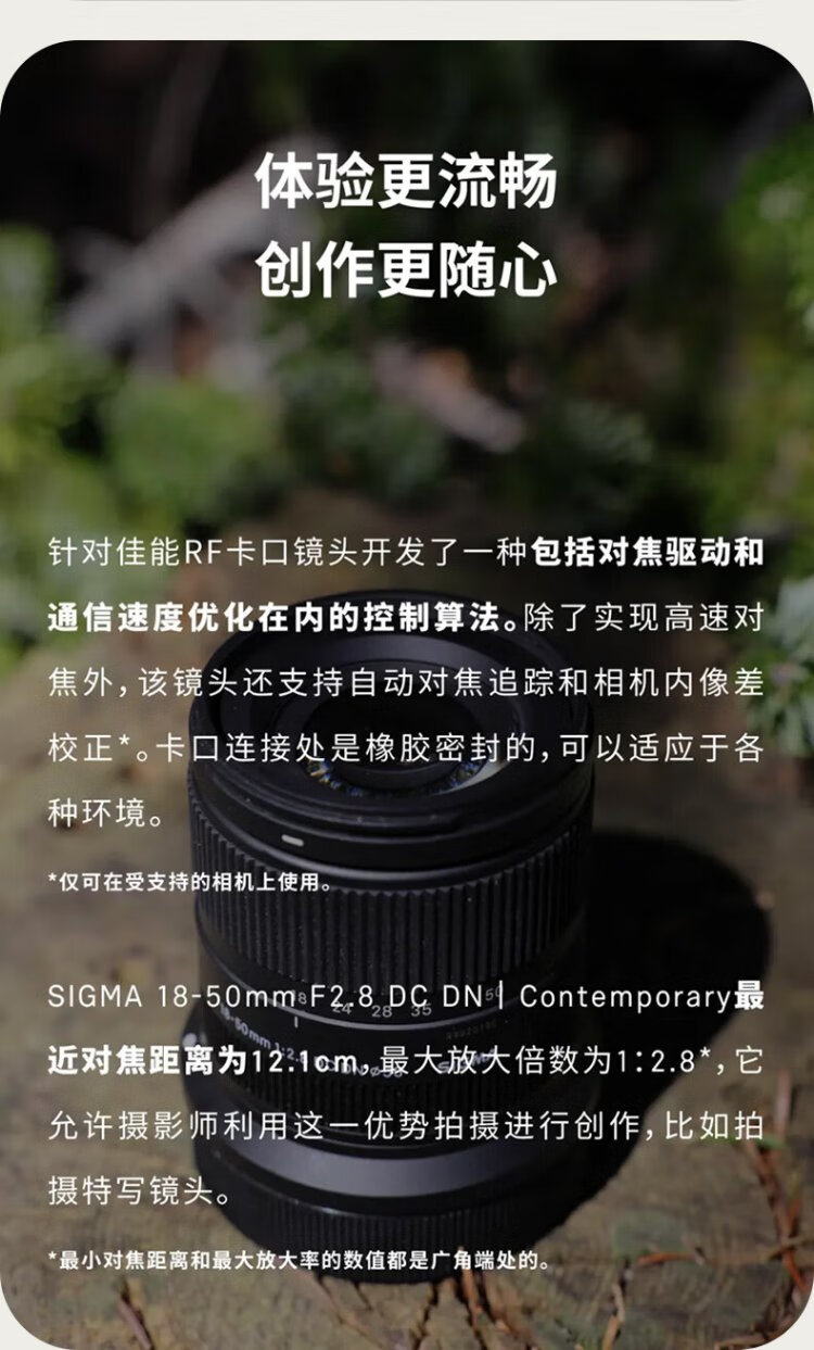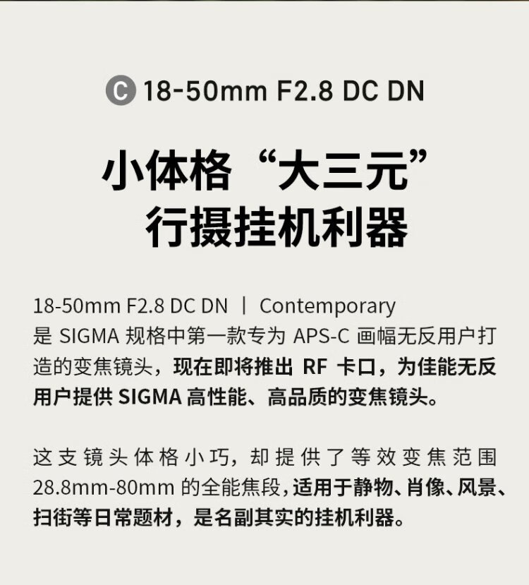 SIGMA 18-50mm F2.8 DC DN Contemporary half-frame mirrorless 1850 standard zoom lens portrait travel live broadcast (Canon RF mount)