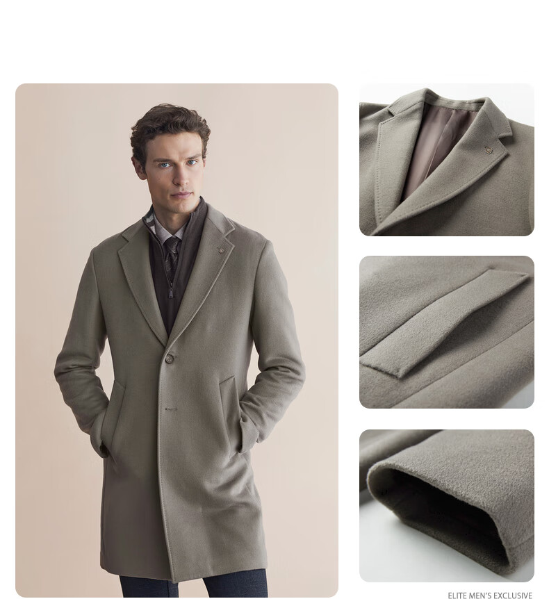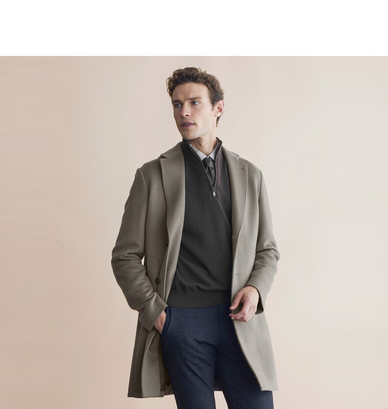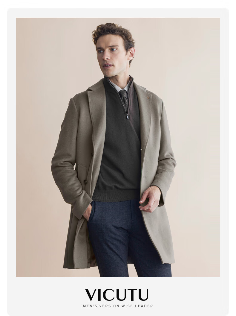 VICUTU coat fashionable suit collar business versatile woolen coat for men VBS21341283 Khaki 175/96B
