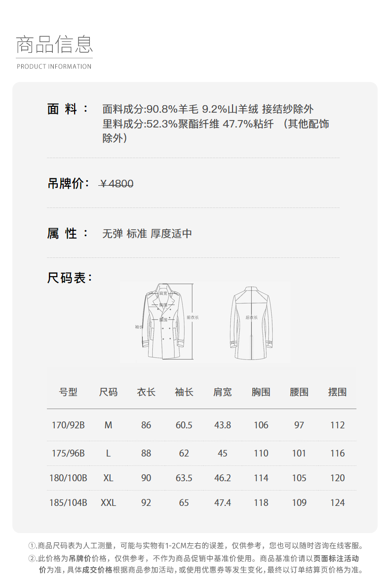 China (cm) 165 / 88-90 170 / 96-98 175 / 108-110 180 / 118-122 185 / 126-130