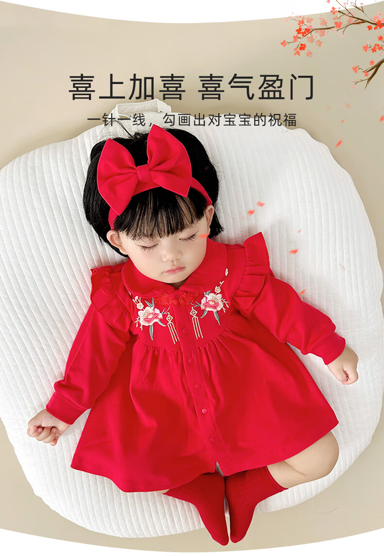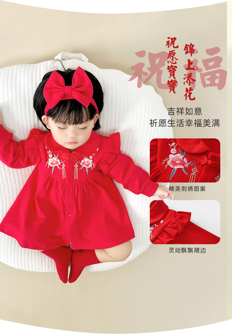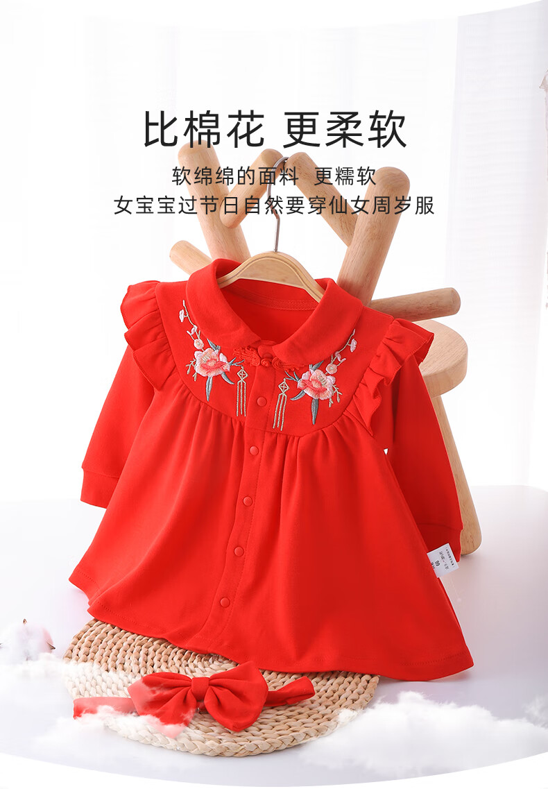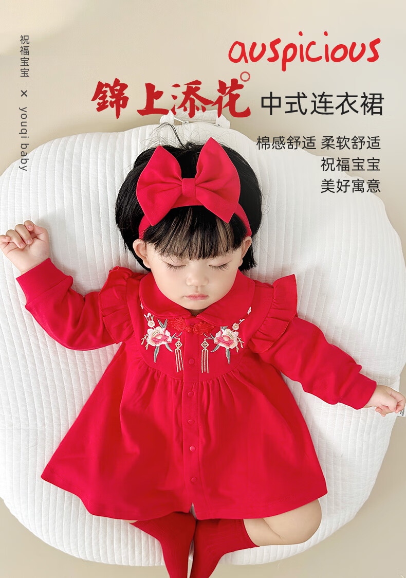 Youqi one-year-old baby girl dress baby clothes princess dress Zhou Guanyi 100-day banquet red snake year New Year dress