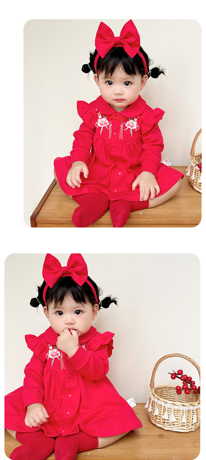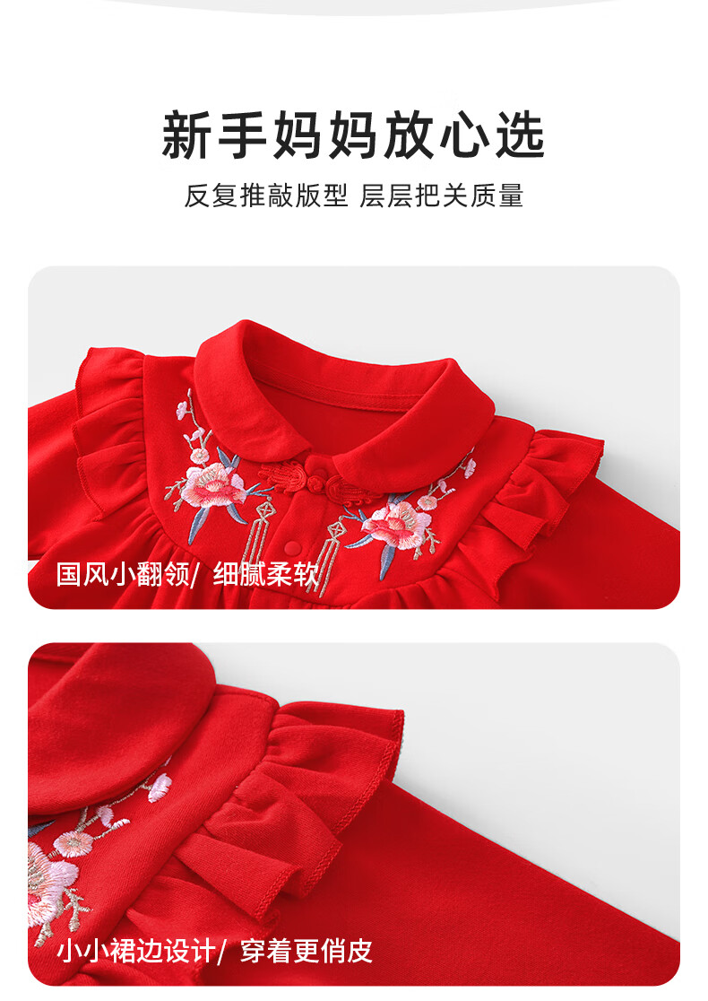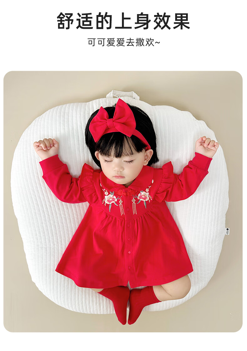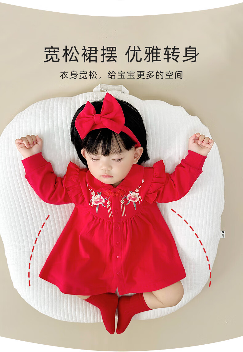 Youqi one-year-old baby girl dress baby clothes princess dress Zhou Guanyi 100-day banquet red snake year New Year dress