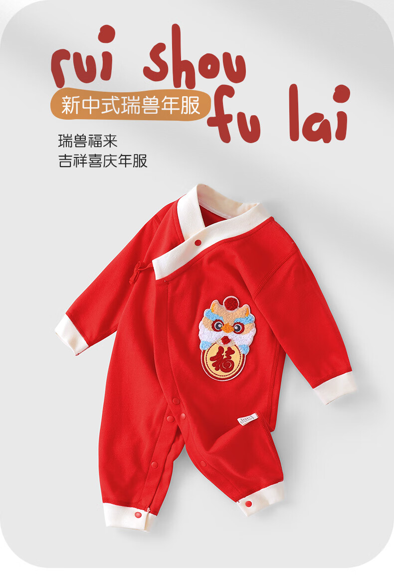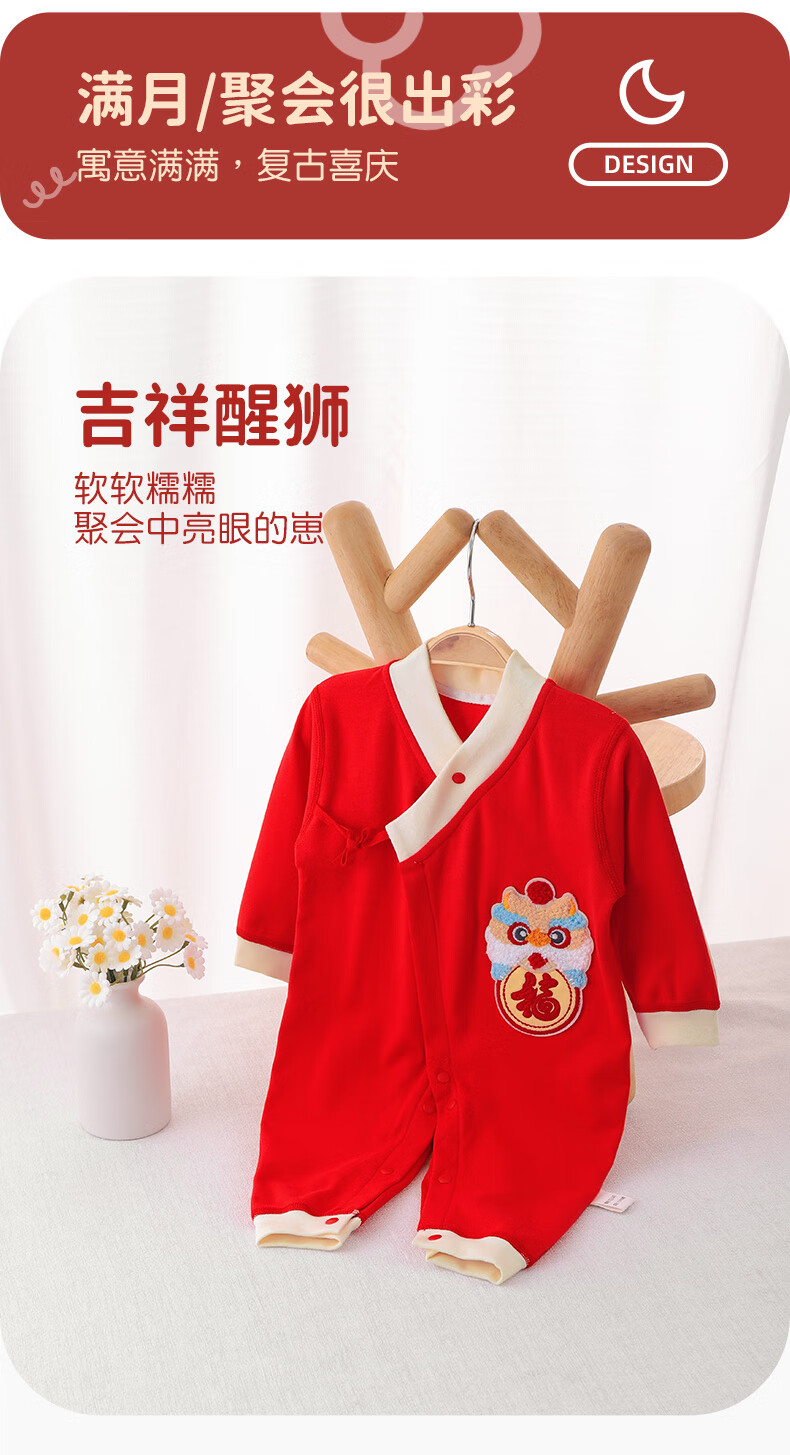 Youqi Newborn Baby Clothes Dragon New Year Baby One-piece Monk Clothes Chinese Full Moon Clothes Hundred Days Dress