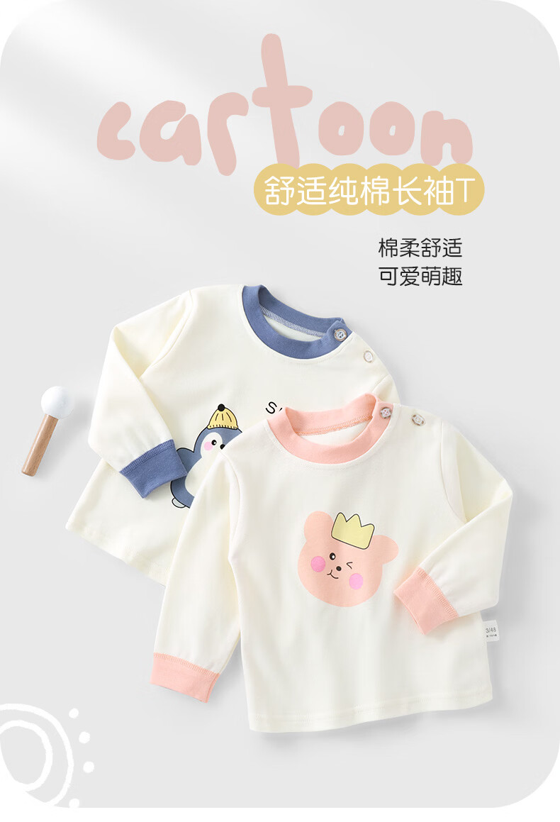 Youqi children's long-sleeved T-shirt spring and autumn pure cotton baby clothes outer wear baby autumn clothes bottoming tops versatile