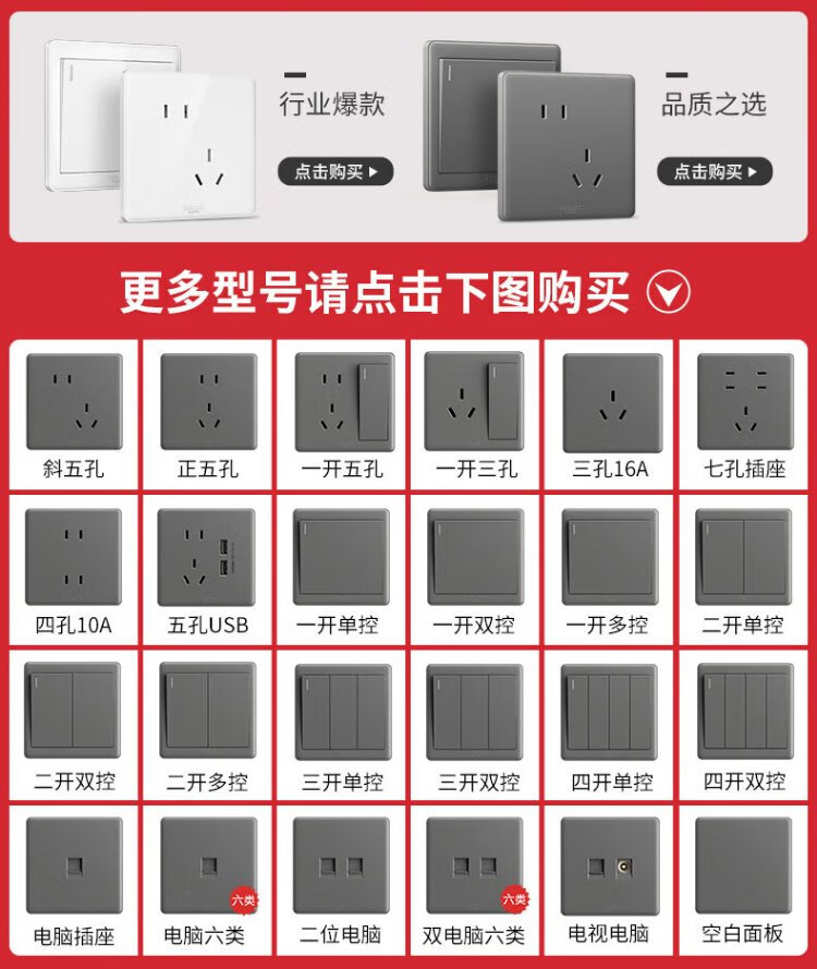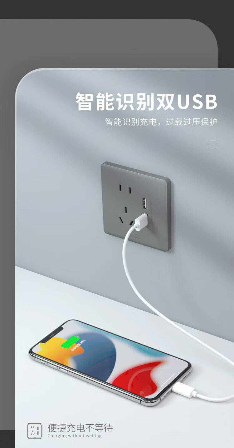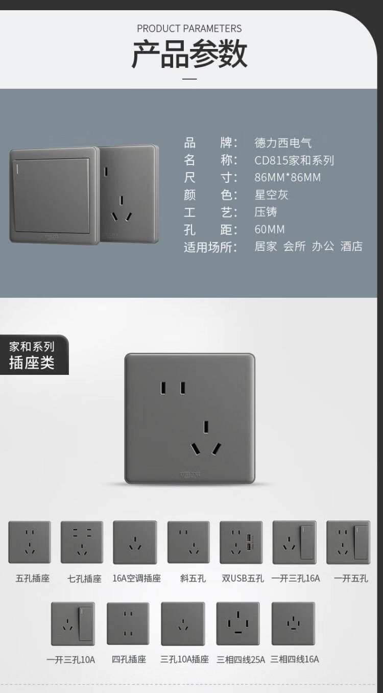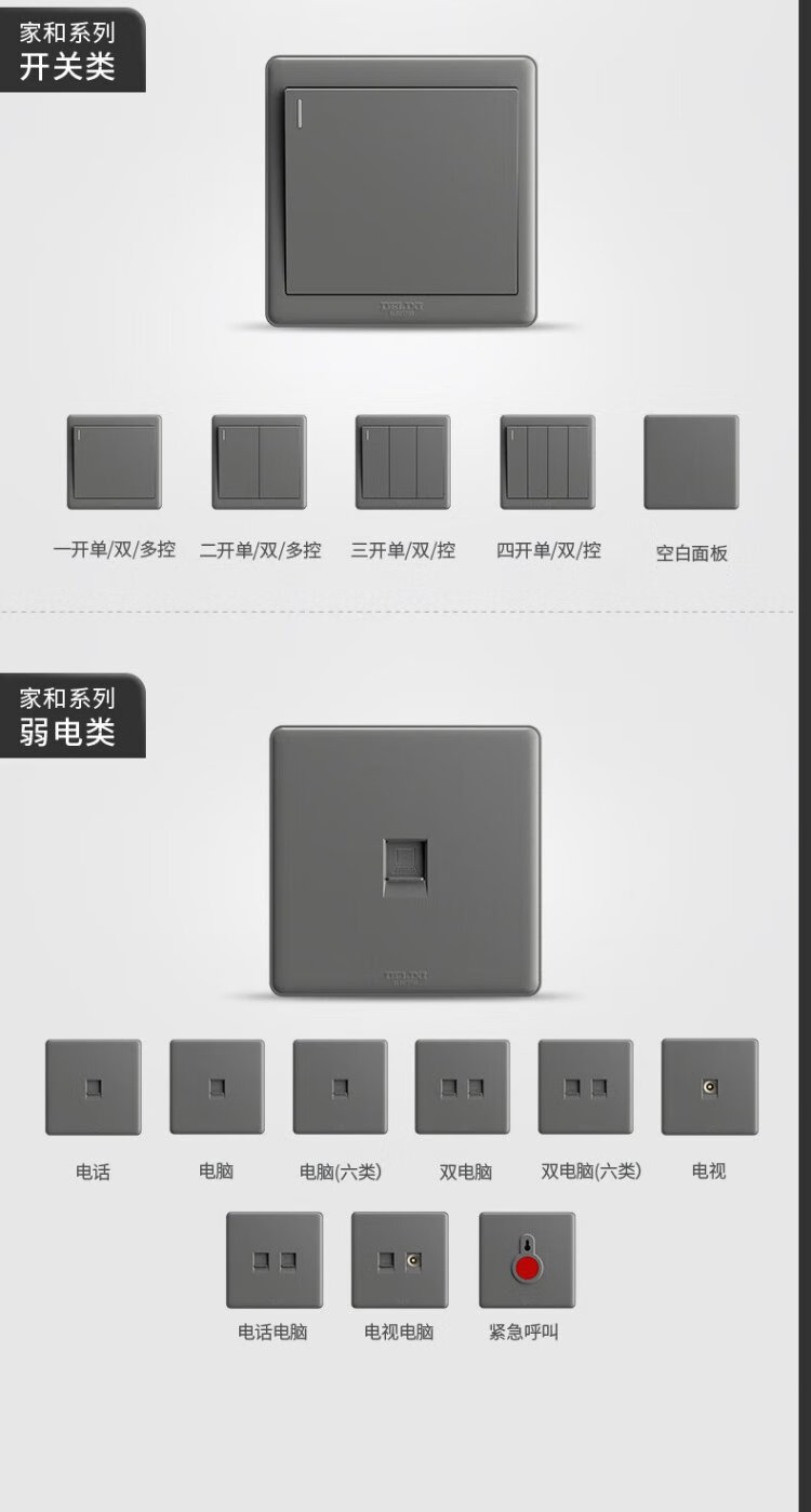 Delixi CD815 series QSE862T8/2/SH two-position eight-core network computer socket (category six) starry gray