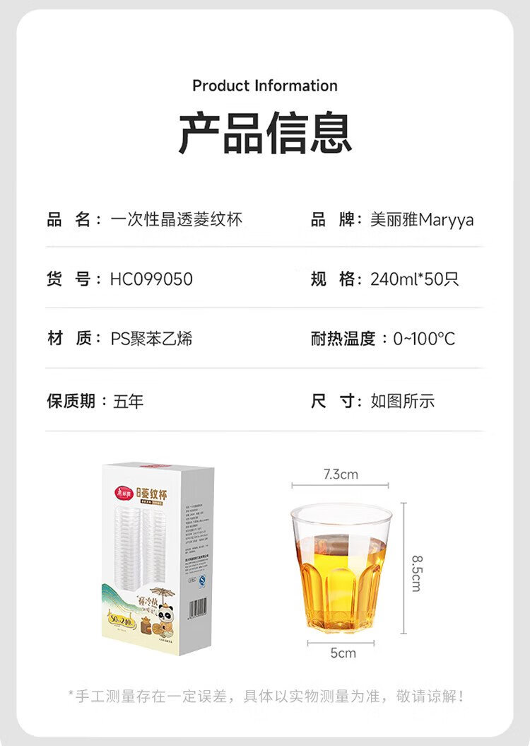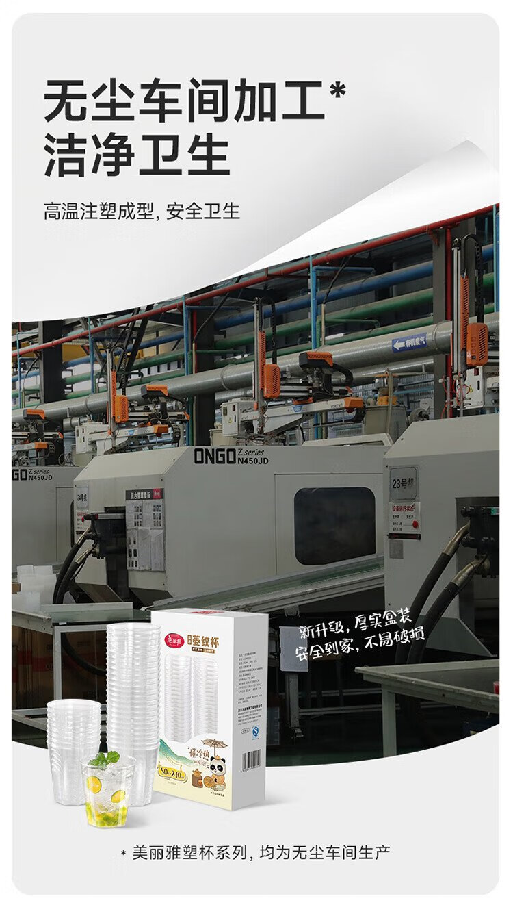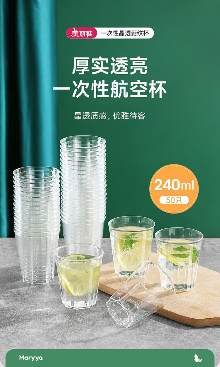 Meiya disposable cup aviation cup 240ml*50 space cup food grade thickened plastic tea drink cup