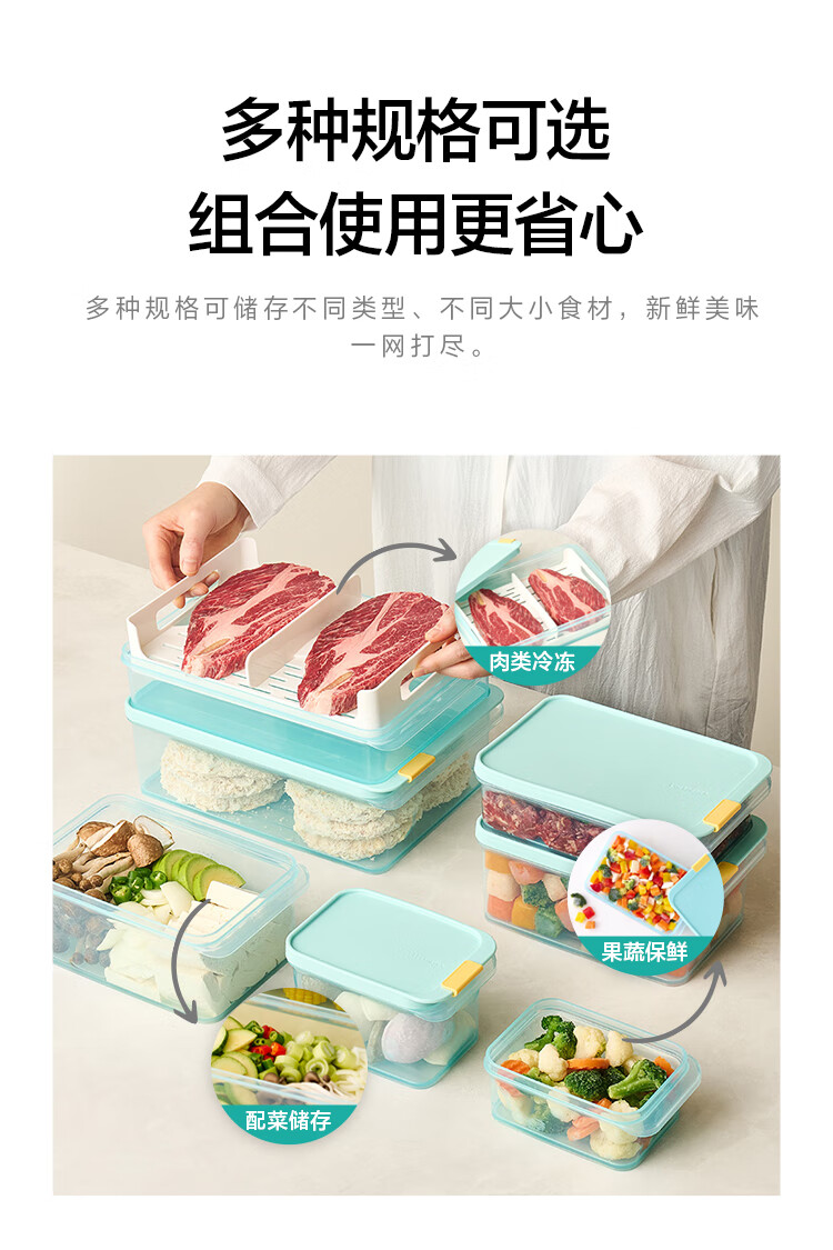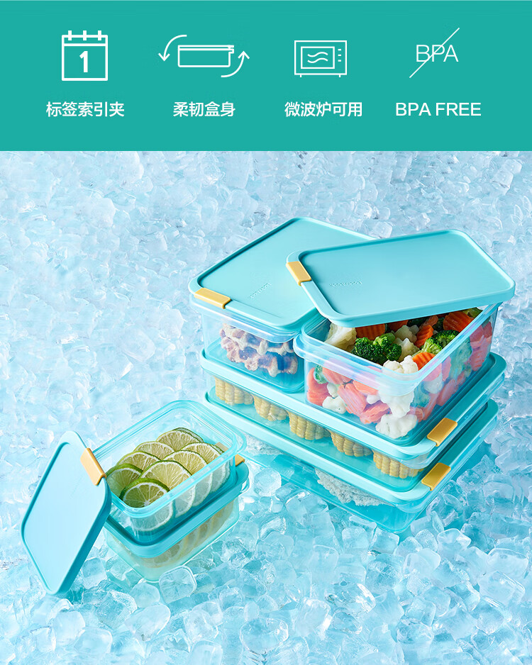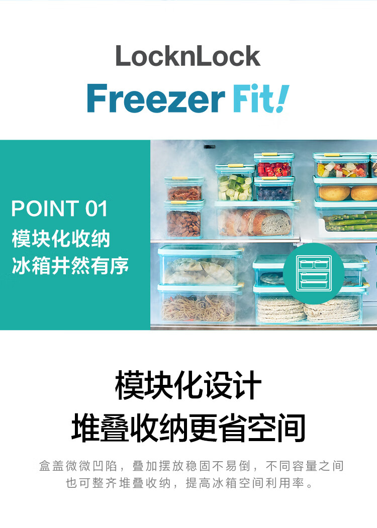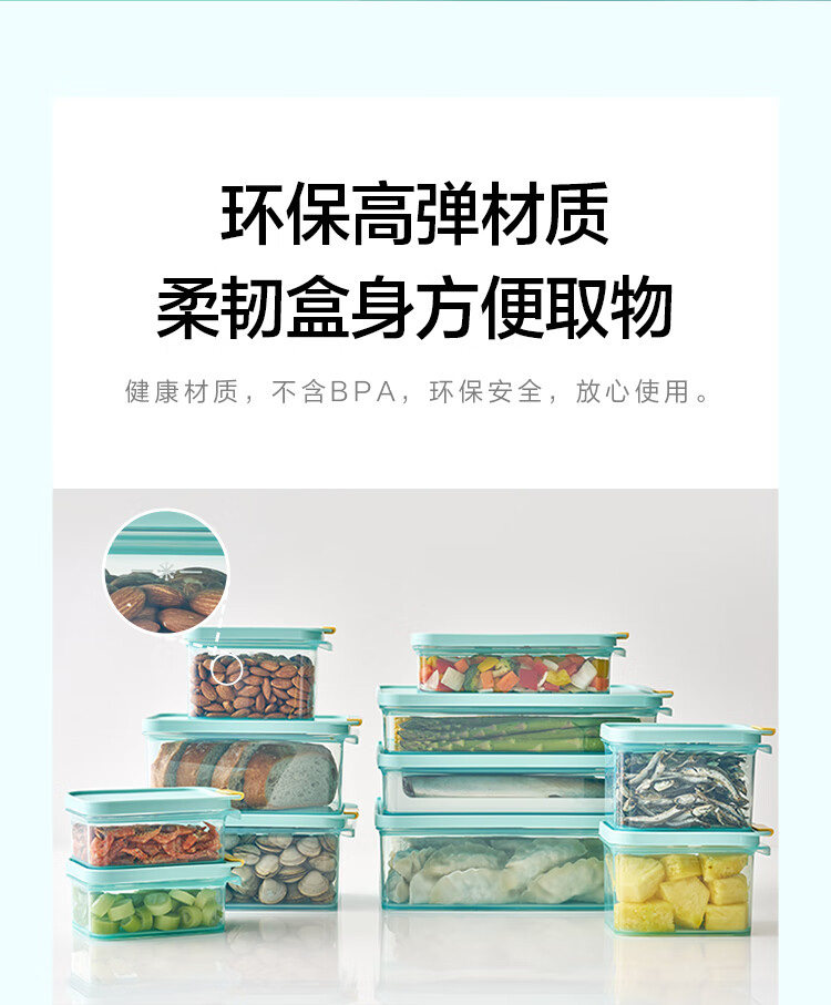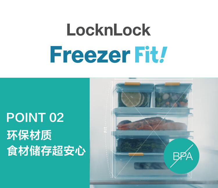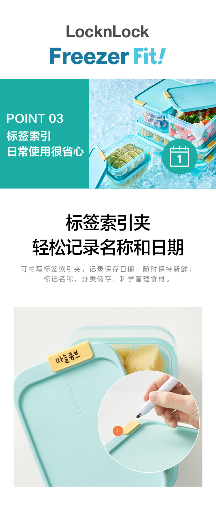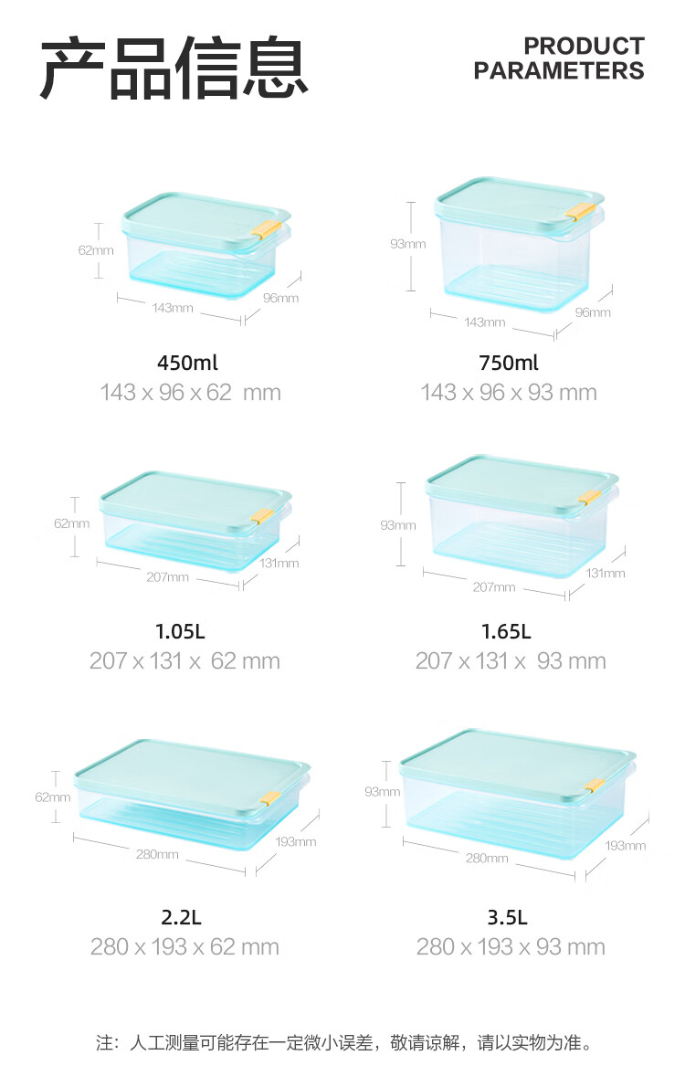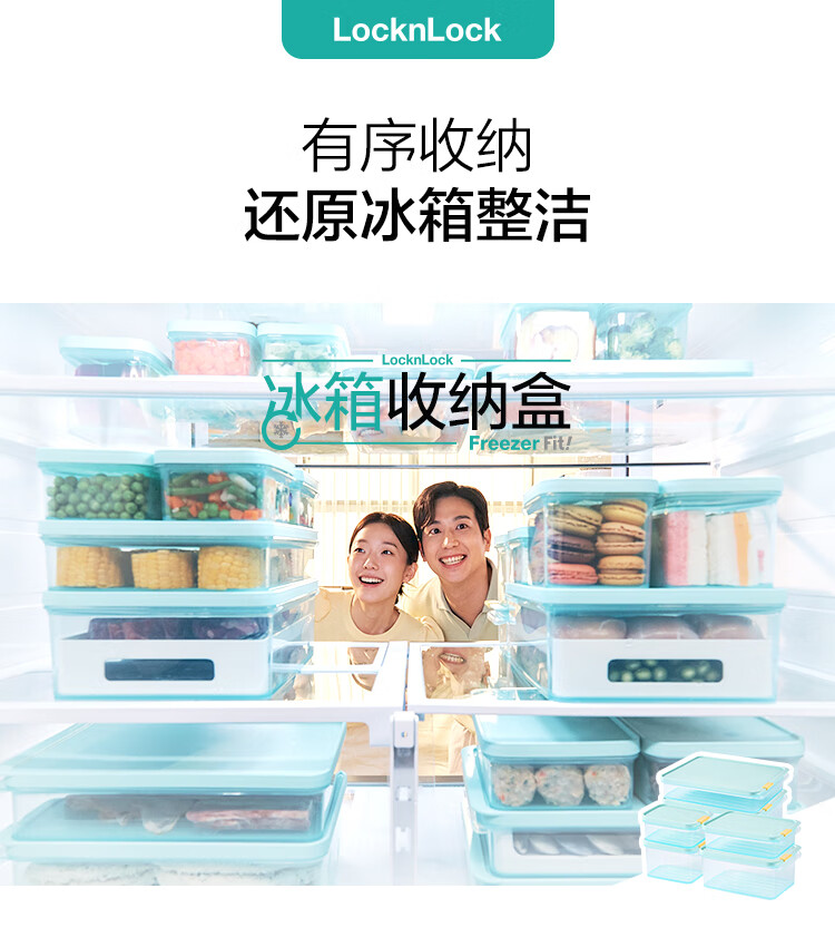 LOCK&LOCK refrigerator storage box plastic crisper portable fruit multi-size lunch box lunch box mint blue 750ml