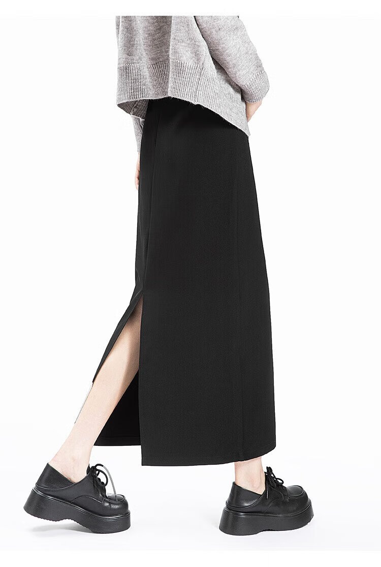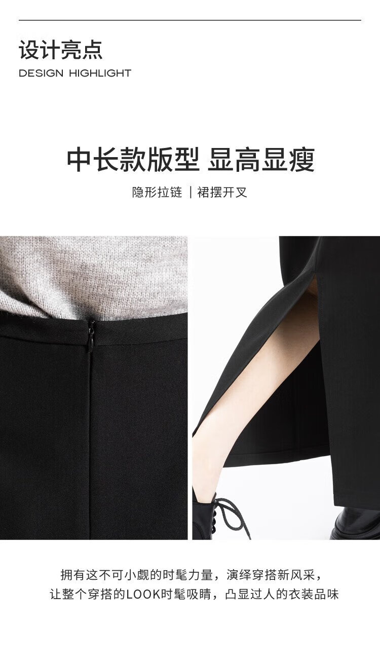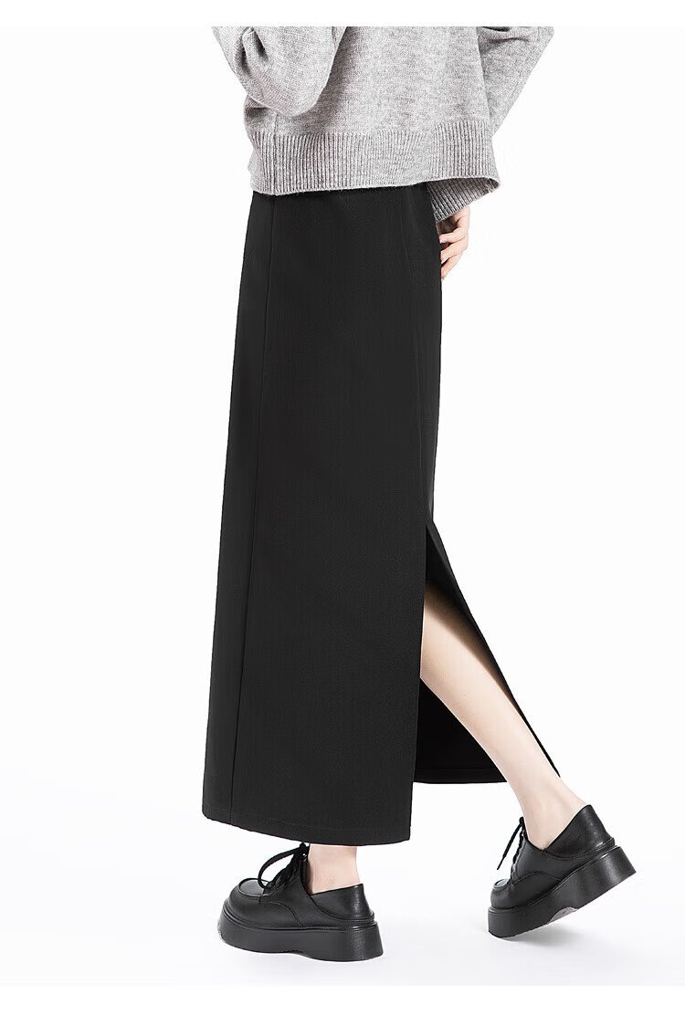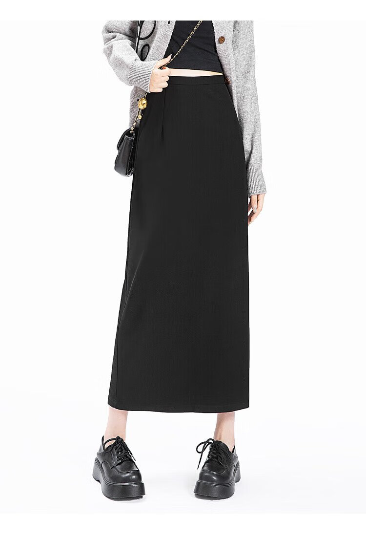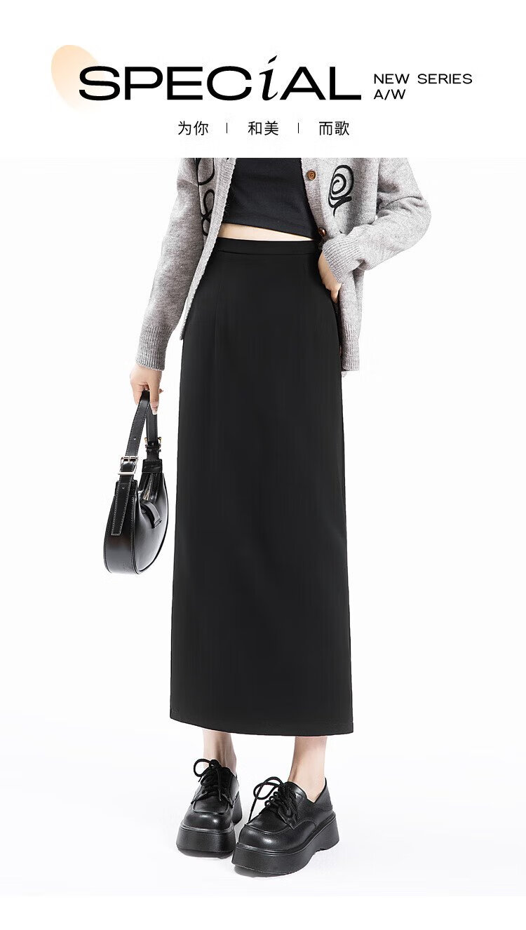 Sibaishe Suit Straight Skirt Women's 2025 Autumn New Style High Waist Covering Flesh Look Slimming Mid-Length Slit One-Step Skirt