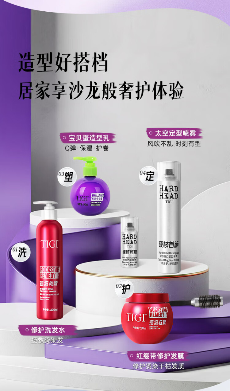 TIGI Elastin Moisturizing Protector for Women's Curly Hair, Anti-frizz and Fluffy, Berry Scent 240ml+125ml