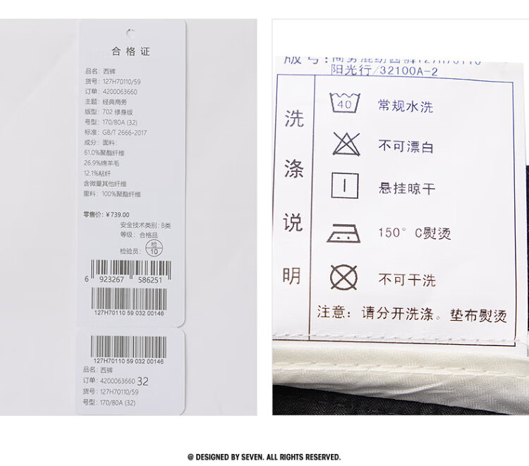 Qipai rhino pleat men's trousers spring and autumn business formal attire including wool men's straight trousers