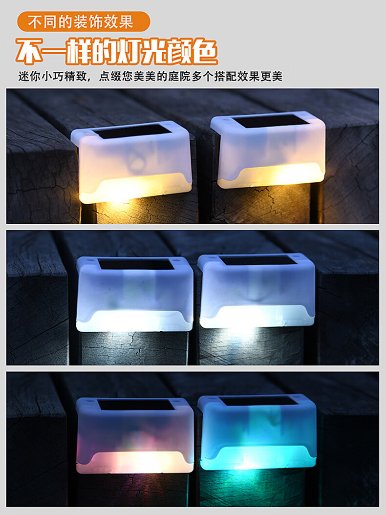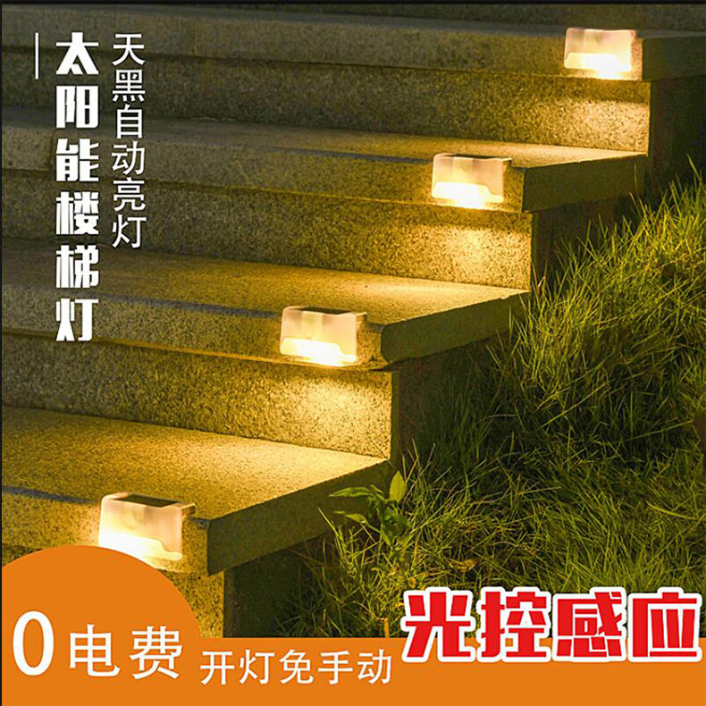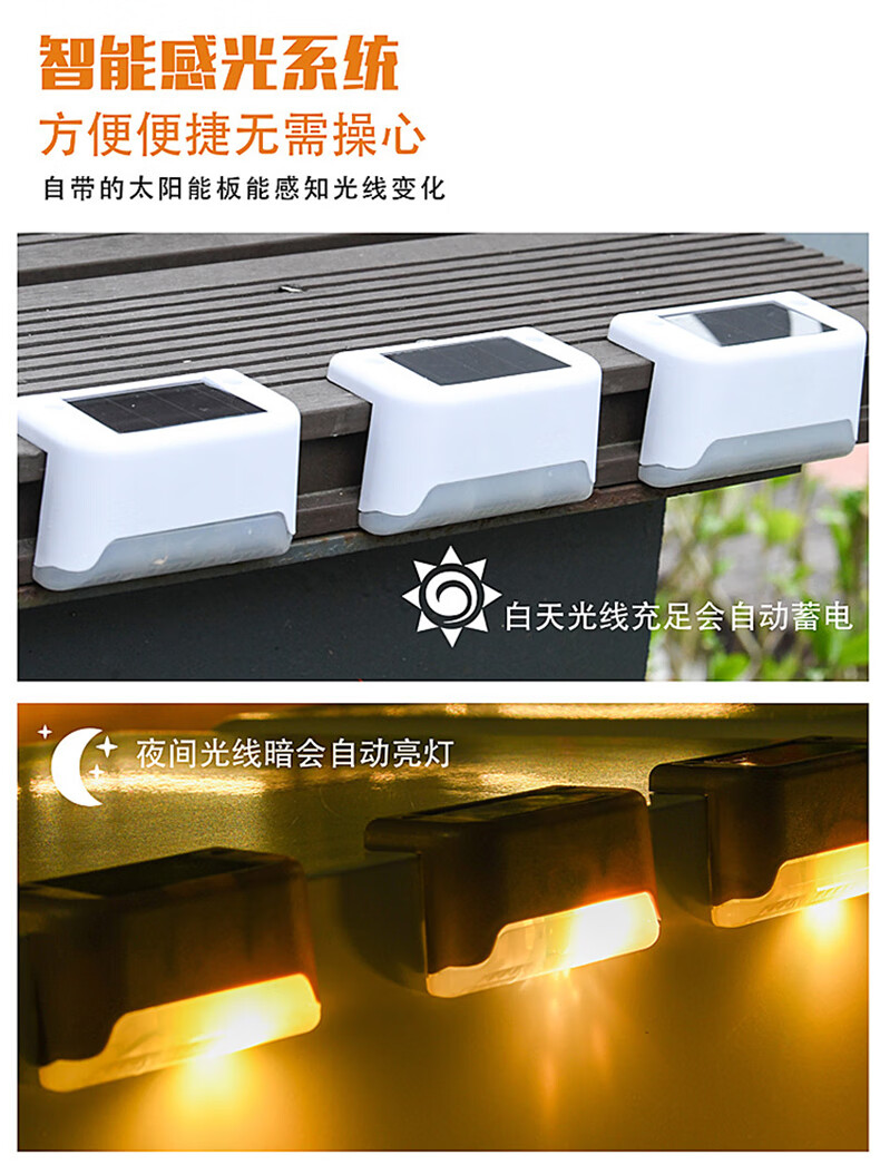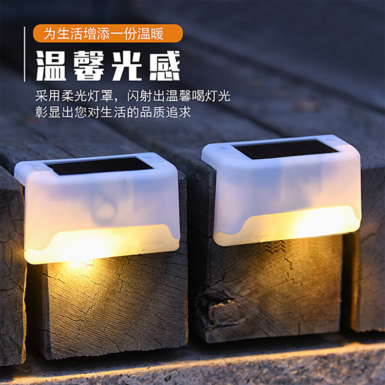 Yuanbo 4 Pack Solar Step Light Outdoor Wall Light Fence Light Waterproof Light Control Induction Stair Light Railing Light Black Shell Warm Light (Beijing Warehouse Shipping)