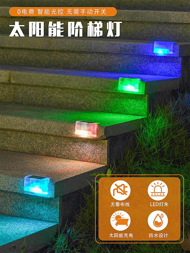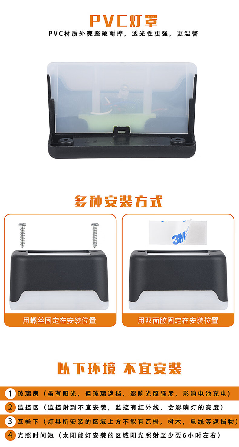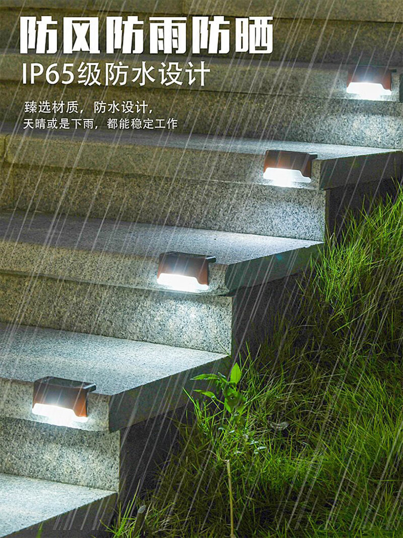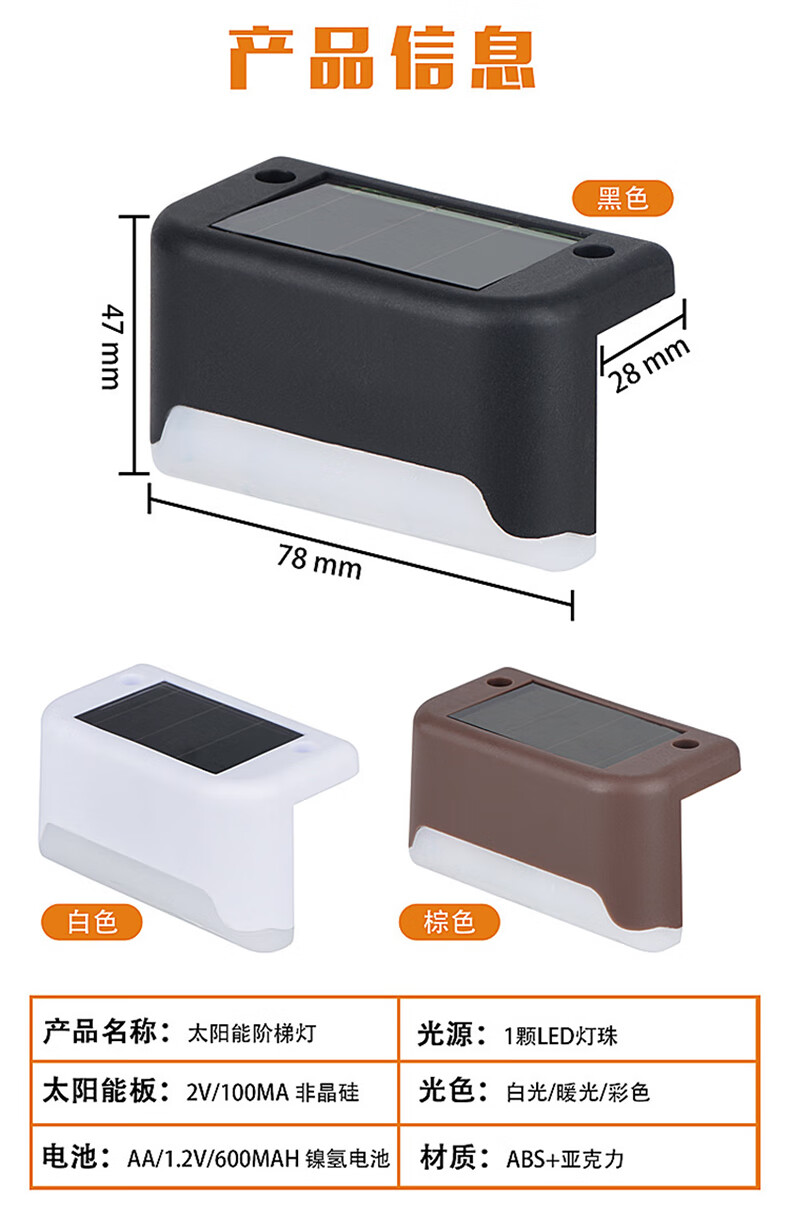 Yuanbo 4 Pack Solar Step Light Outdoor Wall Light Fence Light Waterproof Light Control Induction Stair Light Railing Light Black Shell Warm Light (Beijing Warehouse Shipping)