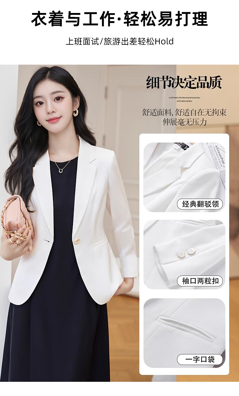 Troman white suit jacket for women in spring and autumn, high-end professional wear, women's temperament, commuter OL casual small suit top