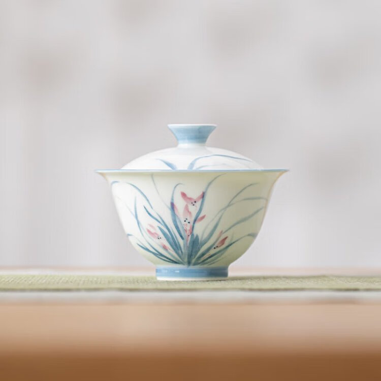 Su's Ceramics Hand-painted Mutton Fat Jade Porcelain Orchid Ercai Tea Bowl Works by Intangible Cultural Heritage Teacher Su Aizhen
