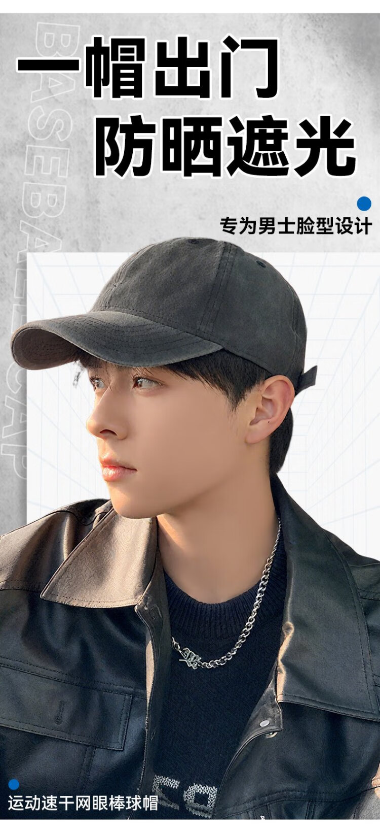 FitonTon baseball cap men's autumn and winter sun protection peaked cap Korean style fashion hat men's large head circumference large brim outdoor men's hat