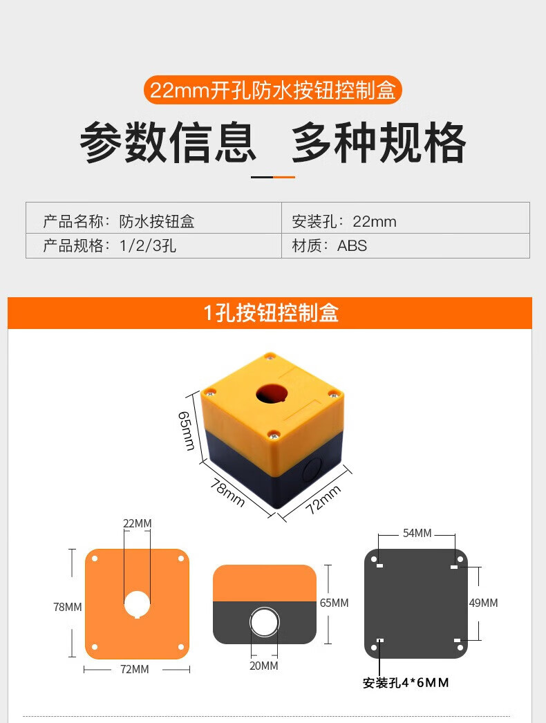 Huijun 22mm waterproof button switch control box splash-proof box dust-proof multi-functional combination set three-position start button switch kit box